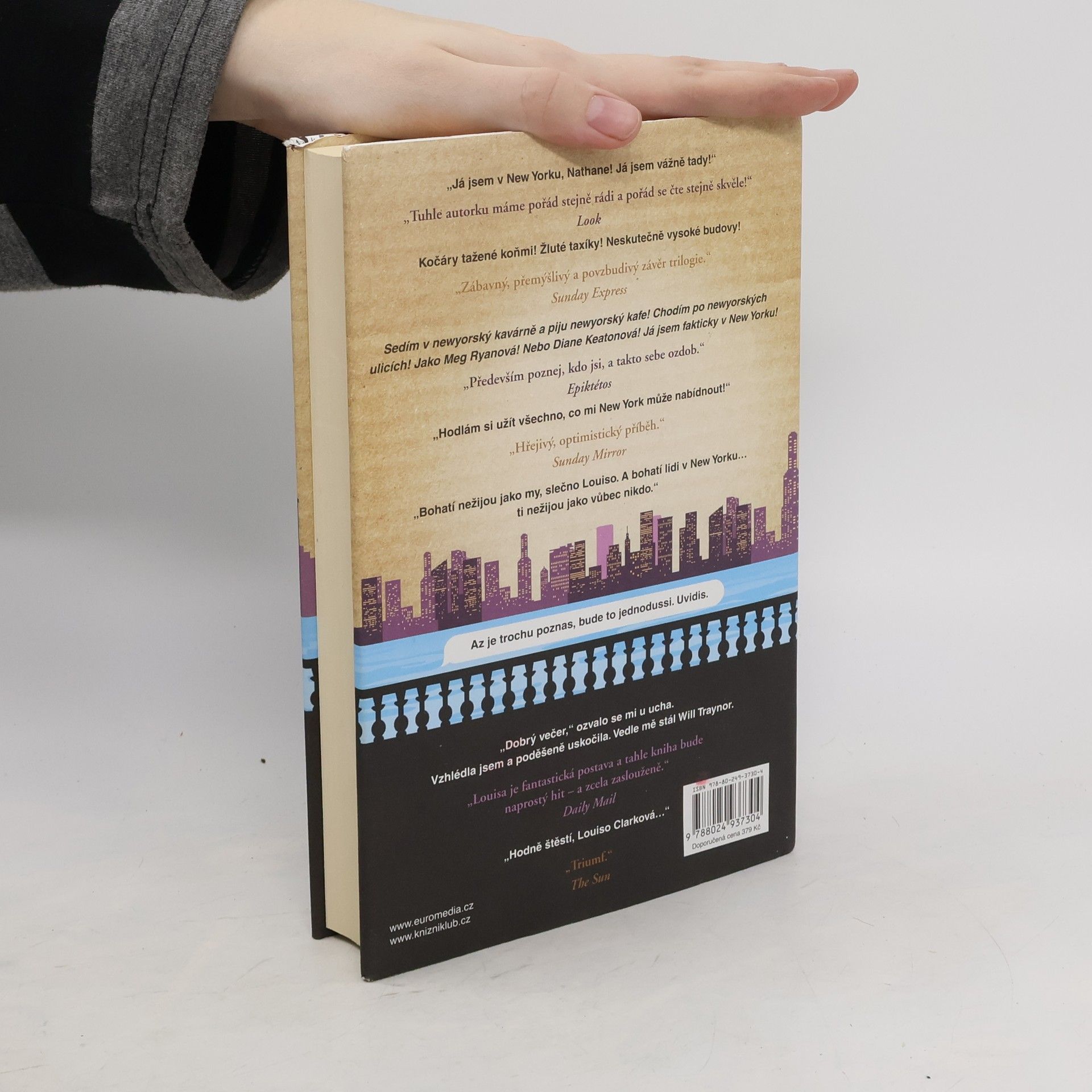 Louisa Clarková z bestellerů Než jsem tě poznala a Život po tobě se vrací v novém románu Jojo Moyesové! A hodně toho ví… Tak například ví, jak daleko je z jejího nového domova v New Yorku do Londýna, kde žije její přítel Sam. Ví také, že její nový zaměstnavatel je dobrý člověk a že před ním jeho manželka skrývá tajemství. Co ovšem Louisa ještě netuší, je to, že nová práce v novém městě jí rozhodně nezaručí idylický život, ve který tolik doufala, a že bude její vztah se Samem z obou stran podroben zkoušce ohněm. A neví také, že lidé, s nimiž se ve své nové životní etapě setká, ji možná postrčí dost nečekaným směrem…