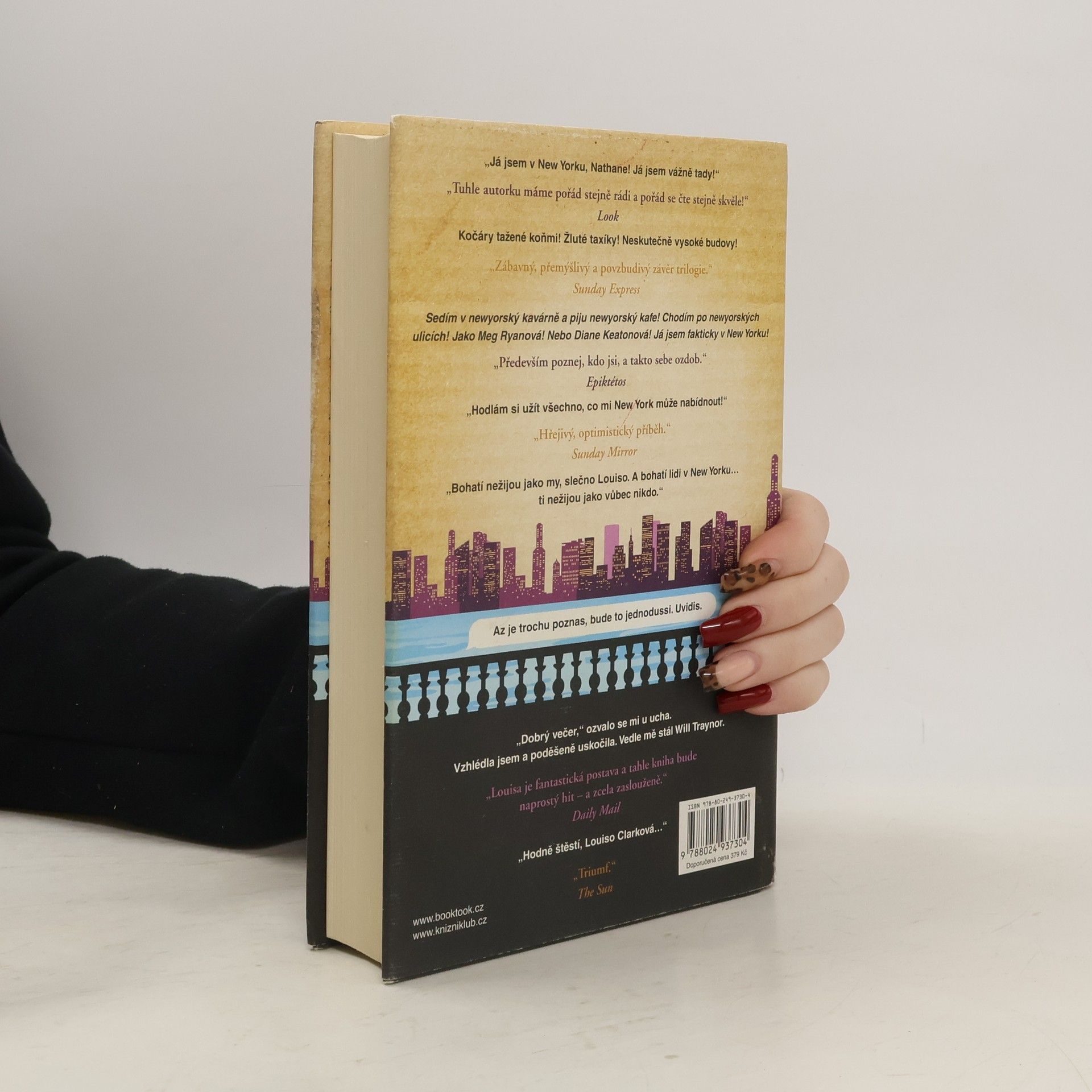 Louisa Clarková z bestellerů Než jsem tě poznala a Život po tobě se vrací v novém románu Jojo Moyesové! A hodně toho ví… Tak například ví, jak daleko je z jejího nového domova v New Yorku do Londýna, kde žije její přítel Sam. Ví také, že její nový zaměstnavatel je dobrý člověk a že před ním jeho manželka skrývá tajemství. Co ovšem Louisa ještě netuší, je to, že nová práce v novém městě jí rozhodně nezaručí idylický život, ve který tolik doufala, a že bude její vztah se Samem z obou stran podroben zkoušce ohněm. A neví také, že lidé, s nimiž se ve své nové životní etapě setká, ji možná postrčí dost nečekaným směrem…