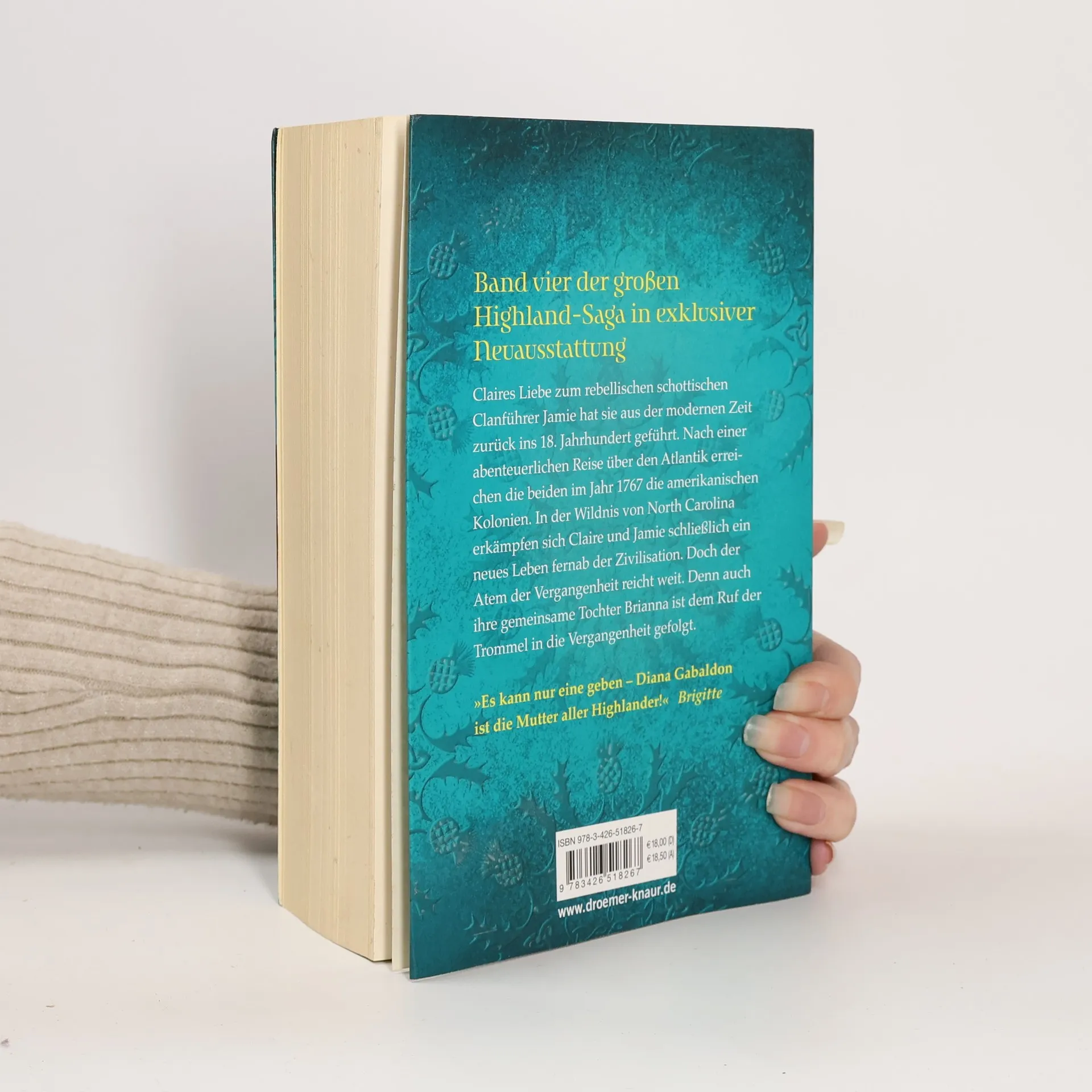 In „Der Ruf der Trommel“, dem vierten Band von Diana Gabaldons opulenter Zeitreise-Saga „Outlander“ bietet die internationale Bestseller-Autorin wieder alles, was man von einem ihrer mitreißenden Schmöker erwartet: Abenteuer, Leidenschaft, Romantik und Spannung. Die leidenschaftliche Liebes-Geschichte von Diana Gabaldons zentralem Liebes-Paar Clare und Jamie Fraser findet hier ihre spannende Fortsetzung vor der malerisch-wilden Kulisse North Carolinas im 18. Jahrhundert: Nach einer langen und abenteuerlichen Reise über den Atlantik erreichen Claire und Jamie Fraser im Jahr 1767 die amerikanischen Kolonien. Doch nach einem Schiffsunglück stehen sie mit leeren Händen da. Weil Jamie sich nicht in die Abhängigkeit von seiner verwitweten Tante Jocasta begeben will, nimmt er das Angebot des Gouverneurs William Tryon an: Gegen das Versprechen, im Falle eines Aufstands Soldaten für die Krone zu stellen, erhält Jamie Siedlungsland in North Carolina. So ziehen er und Claire zusammen in die Wildnis und bauen dort die Siedlung Fraser's Ridge auf. Doch Claire fürchtet den Moment, in dem William Tryon die Einlösung des Versprechens einfordern wird … „Es kann nur eine geben – Diana Gabaldon ist die Mutter aller Highlander!“ Brigitte Alle Bände der „Outlander“-Reihe von Diana Gabaldon: • »Outlander« • »Outlander - Die geliehene Zeit« • »Outlander - Ferne Ufer« • »Outlander - Der Ruf der Trommel« • »Outlander - Das flammende Kreuz« • »Outlander - Ein Hauch von Schnee und Asche« • »Outlander - Echo der Hoffnung« • »Outlander - Ein Schatten von Verrat und Liebe«