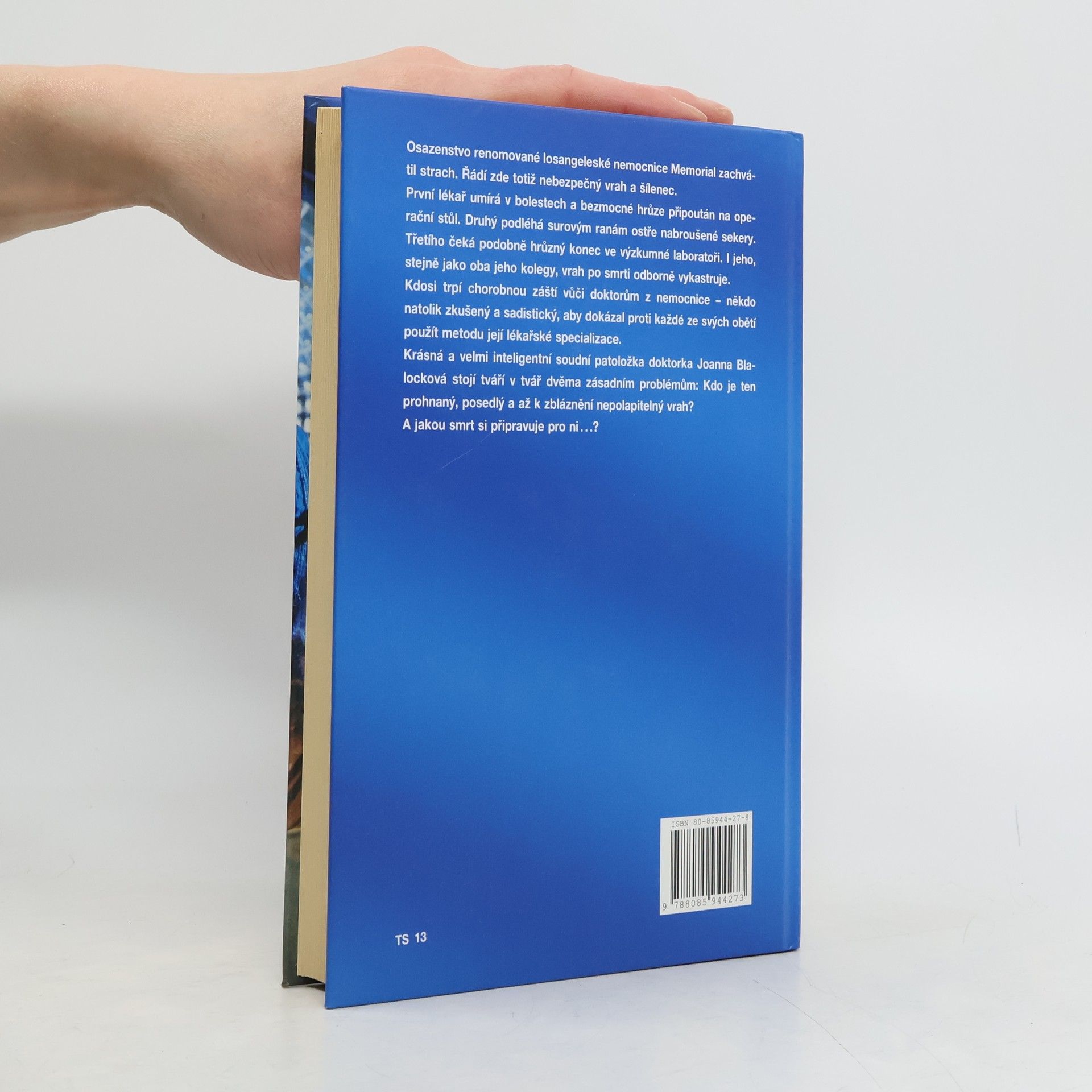 Osazenstvo renomované losangeleské nemocnice Memorial zachvátil strach. Řádí zde totiž nebezpečný vrah a šílenec. První lékař umírá v bolestech a bezmocné hrůze připoután na operační stůl. Druhý podléhá surovým ranám ostře nabroušené sekery. Třetího čeká podobně hrůzný konec ve výzkumné laboratoři. I jeho, stejně jako oba předchozí, vrah po smrti odborně vykastruje. Kdosi trpí chorobnou záští vůči doktorům z nemocnice - někdo natolik zkušený a sadistický, aby dokázal proti každé ze svých obětí použít metod její lékařské specializace. Soudní patoložka Joanna Blalocková stojí tentokrát tváří v tvář dvěma zásadním problémům: Kdo je ten prohnaný, posedlý a až k zbláznění nepolapitelný vrah? A jakou smrt si připravuje pro ni...?