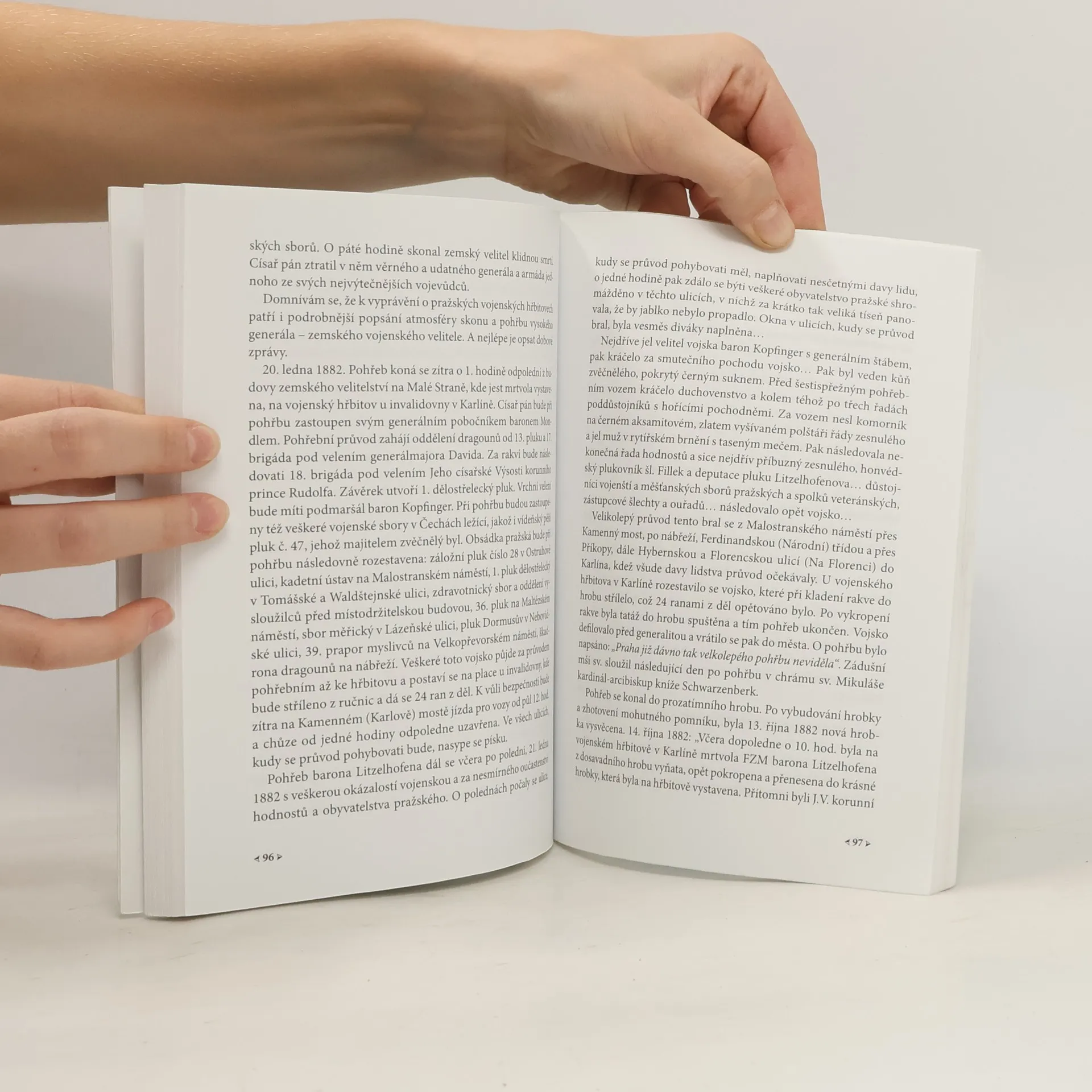 Kniha o zaniklých pražských vojenských hřbitovech. Vášeň fotografovat vojenské hroby 19. století, kterou oba autoři sdíleli a které se soustředěně věnovali, manželé náhodou objevili na dovolené v Českém ráji v roce 1973, na jednom z bojišť prusko-rakouské války roku 1866. Následovalo putování po místech bitev ve východních a severních Čechách a poté i objevování hřbitovů nacházejících se v Praze. Jelikož některé náhrobky se již téměř rozpadly a spolky pečující o hroby byly za komunismu násilně rozpuštěny, fotografování bylo vlastně jediným možným způsobem jejich dokumentace. Text určený pro článek o bývalém dělostřeleckém hřbitově na Hradčanech pro spolkový časopis "Bellum 1866" byl poté impulsem pro vypracování tohoto informačně vyčerpávajícího svědectví o zaniklých pražských vojenských hřbitovech.