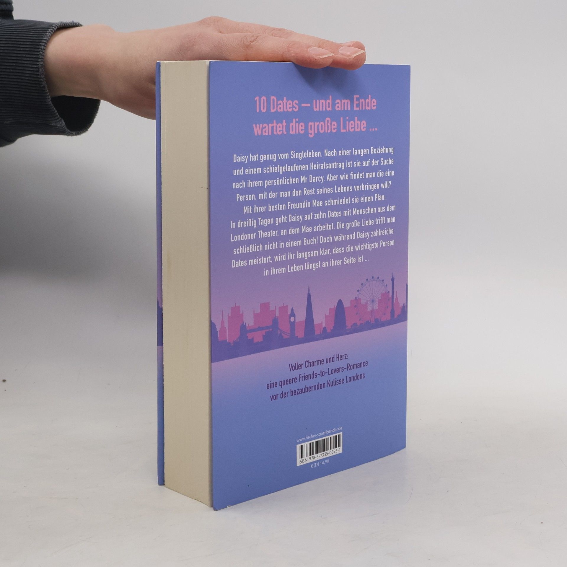 10 Dates – und am Ende wartet die große Liebe... Daisy hat genug vom Singleleben. Nach einer langen Beziehung und einem schiefgelaufenen Heiratsantrag ist sie auf der Suche nach ihrem persönlichen Mr. Darcy. Aber wie findet man die eine Person, mit der man den Rest seines Lebens verbringen will? Mit ihrer besten Freundin Mae schmiedet sie einen Plan: In dreißig Tagen geht Daisy auf zehn Dates mit den Teammitgliedern des Londoner Theaters, an dem Mae arbeitet. Denn Mae ist sich sicher: Theatermenschen sind offen, warmherzig und witzig. Genau das, was Daisy braucht. Die große Liebe trifft man schließlich nicht in einem Buch! Doch während Daisy zahlreiche Dates meistert, wird ihr langsam klar, dass die wichtigste Person in ihrem Leben längst an ihrer Seite ist … Voller Humor und Tiefgang: eine queere Friends-to-Lovers-Wohlfühl-Romance mit Charme und Herz vor der bezaubernden Kulisse Londons