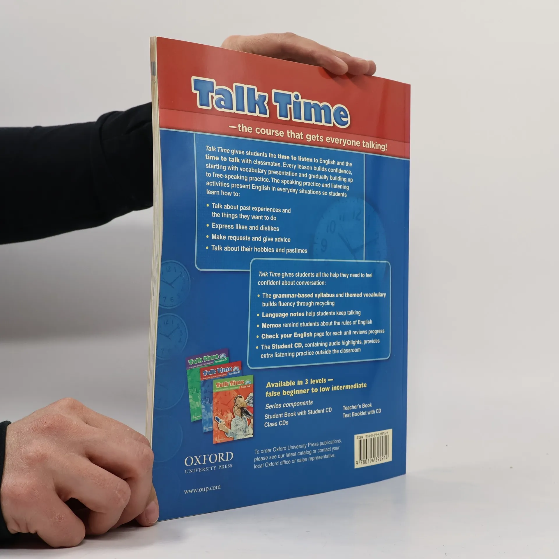 Talk Time is a three-level conversation course that provides speaking and listening practice based on everyday situations. Gentle progression of communicative activities in each lesson makes it ideal for less confident students. The Student CD, included at the back of the Student Book, contains recordings of the conversations to provide students with listening practice outside of the classroom.