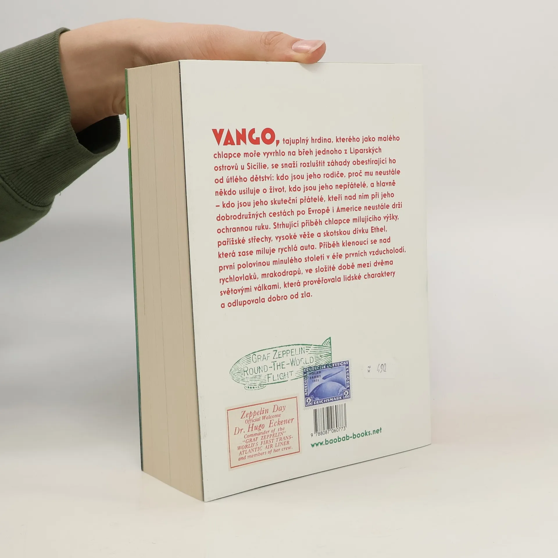 Vango je tajuplný hrdina, kterého jako malého chlapce vyvrhlo moře na břeh jednoho z Liparských ostrovů u Sicílie, a který se snaží rozluštit záhady obestírající jeho život: kde jsou jeho rodiče? Proč mu neustále někdo usiluje o život? Kdo to nad ním při jeho dobrodružných cestách po Evropě i Americe neustále drží ochrannou ruku? Strhující román o chlapci milujícím výšky, pařížské střechy, vysoké věže a skotskou dívku Ethel sepsal francouzský spisovatel Timothée de Fombelle, mimo jiné autor velkého dobrodružného románu pro děti Tobiáš Lolness. Nyní přináší příběh klenoucí se nad první polovinou minulého století, v éře prvních vzducholodí, rychlovlaků, mrakodrapů, ve složité době mezi dvěma světovými válkami, která prověřovala lidské charaktery a odlupovala dobro od zla.