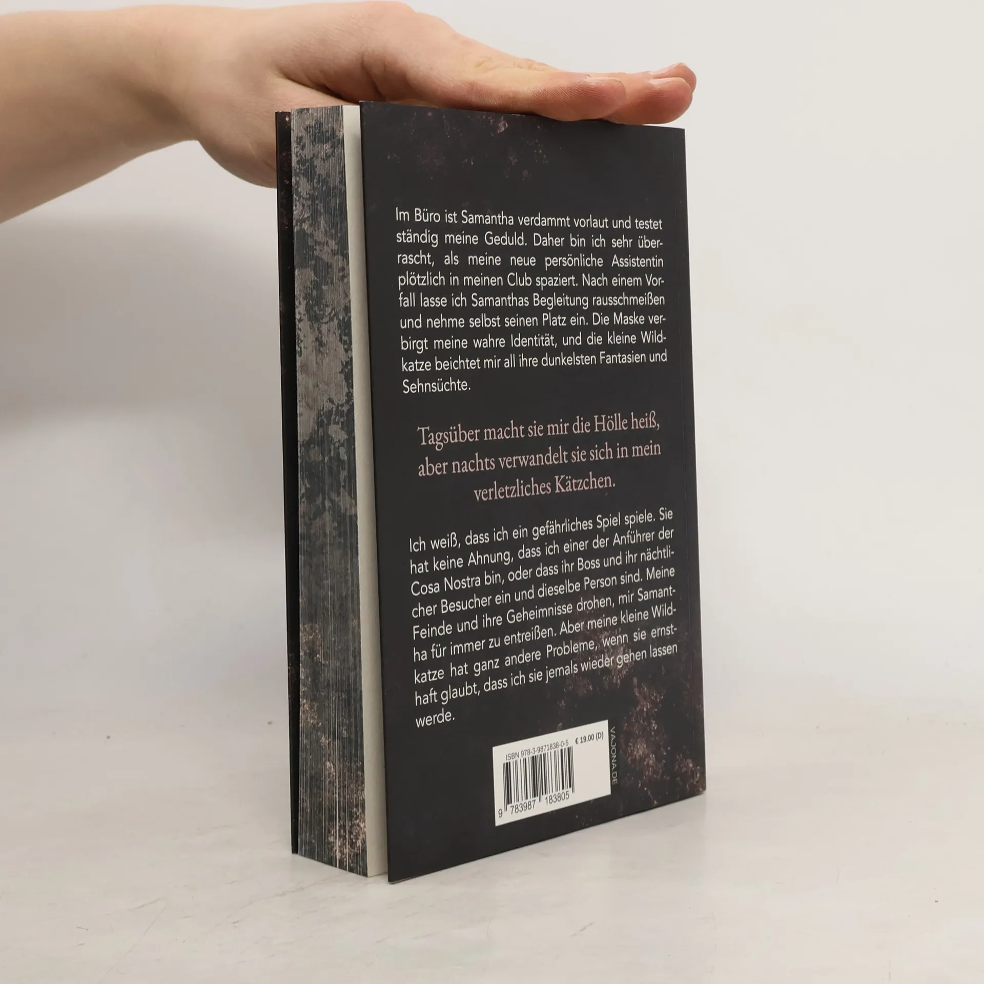 Im Büro ist Samantha verdammt vorlaut und testet ständig meine Geduld. Man kann sich meine Überraschung also vorstellen, als meine neue persönliche Assistentin plötzlich in meinen Club spaziert. Mit einer sehr speziellen Fantasie. Als der Typ, der Samantha begleitet, sich nicht an die Hausregeln hält, lasse ich ihn rauswerfen und nehme seinen Platz ein. Die Maske verbirgt meine wahre Identität, und schon bald beichtet mir die kleine Wildkatze aus dem Büro all ihre dunkelsten Fantasien und Sehnsüchte. Tagsüber macht sie mir die Hölle heiß, aber nachts verwandelt sie sich in mein verletzliches Kätzchen. Ich weiß, dass ich hier ein gefährliches Spiel spiele. Sie hat keine Ahnung, dass ich einer der Anführer der Cosa Nostra bin. Und sie weiß auch nicht, dass ihr Boss und ihr nächtlicher Besucher ein und dieselbe Person sind. Als meine Feinde angreifen und sie von ihrer Vergangenheit eingeholt wird, fliegen all unsere Geheimnisse explosionsartig auf. Und drohen, mir Samantha für immer zu entreißen. Aber meine kleine Wildkatze hat noch ganz andere Probleme, wenn sie ernsthaft glaubt, dass ich sie jemals wieder gehen lassen werde.