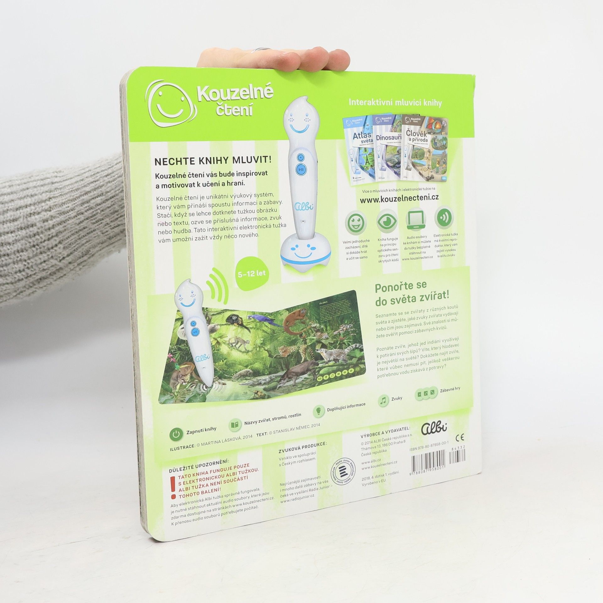Ponořte se do světa zvířat! Seznamte se se zvířaty ze všech koutů světa a zjistěte, jaké zvuky vydávají, čím se živí nebo čím jsou jedinečná. Kniha vás tématicky provede osmi různými prostředími z naší planety, jako je les, savana, poušť, moře a další. Na každé straně se dozvíte, jaká zvířata v daném prostředí žijí, jak se jmenují, jaké zvuky vydávají a čím jsou zajímavá. Své znalosti si pak můžete ověřit pomocí zábavných kvízů, které jsou vždy rozděleny do tří kategorií: najdi zvíře podle názvu, najdi zvíře podle zvuku, najdi zvíře podle zajímavosti. Kniha je namluvena známým českým hercem Otakarem Brouskem ml. Kniha obsahuje přes 900 zvuků a textů. Kniha vznikla ve spolupráci s Českým rozhlasem.