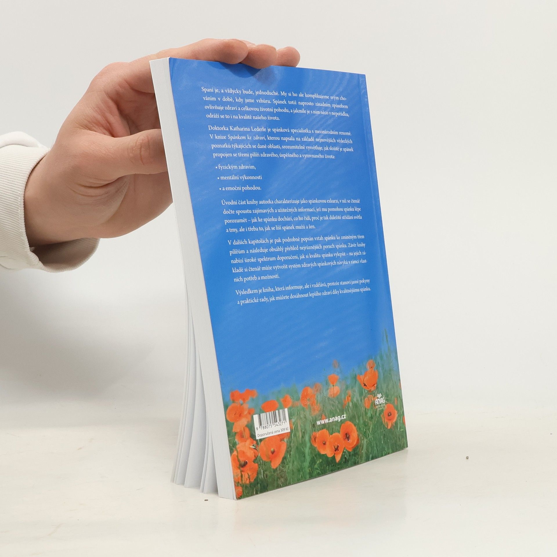 Spaní je, a vždycky bude, jednoduché. My si ho ale komplikujeme svým chováním v době, kdy jsme vzhůru. Spánek totiž naprosto zásadním způsobem ovlivňuje zdraví a celkovou životní pohodu, a jakmile je s ním něco v nepořádku, odráží se to i na kvalitě našeho života. Doktorka Katharina Lederle je spánková specialistka s mezinárodním renomé. V knize Spánkem ke zdraví, kterou napsala na základě nejnovějších vědeckých poznatků týkajících se dané oblasti, srozumitelně vysvětluje, jak složitě je spánek propojen se třemi pilíři zdravého, úspěšného a vyrovnaného života: fyzickým zdravím, mentální výkonností a emoční pohodou. Úvodní část knihy autorka charakterizuje jako spánkovou exkurzi, v níž se čtenář dočte spoustu zajímavých a užitečných informací, jež mu pomohou spánku lépe porozumět – jak ke spánku dochází, co ho řídí, proč je tak důležité střídání světla a tmy, ale i třeba to, jak se liší spánek mužů a žen. V dalších kapitolách je pak podrobně popsán vztah spánku ke zmíněným třem pilířům a následuje obsáhlý přehled nejrůznějších poruch spánku. Závěr knihy nabízí široké spektrum doporučení, jak si kvalitu spánku vylepšit – na jejich základě si čtenář může vytvořit systém zdravých spánkových návyků v rámci vlastních potřeb a možností. Výsledkem je kniha, která informuje, ale i vzdělává, protože stanoví jasné pokyny a praktické rady, jak můžete dosáhnout lepšího zdraví díky lepšímu spánku.