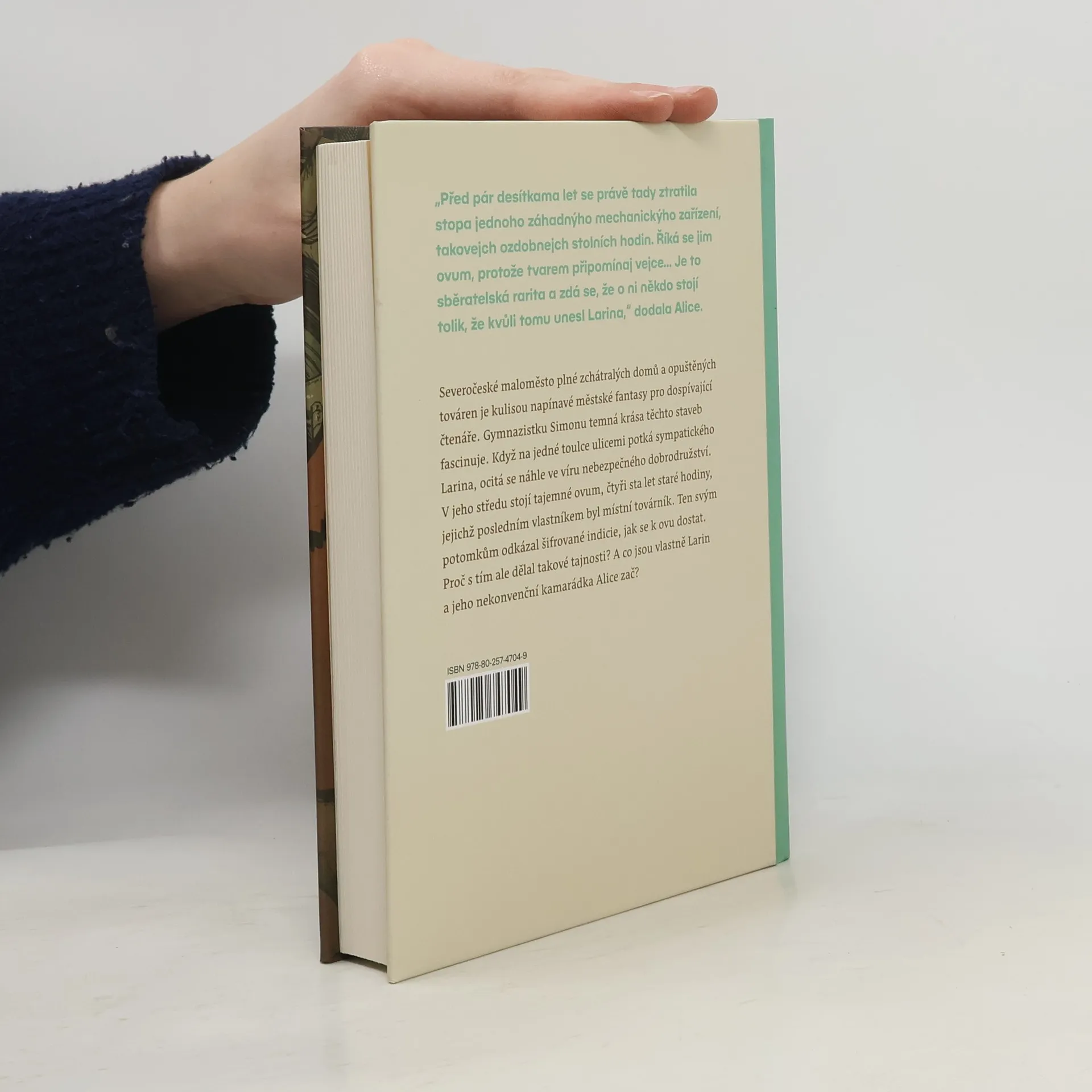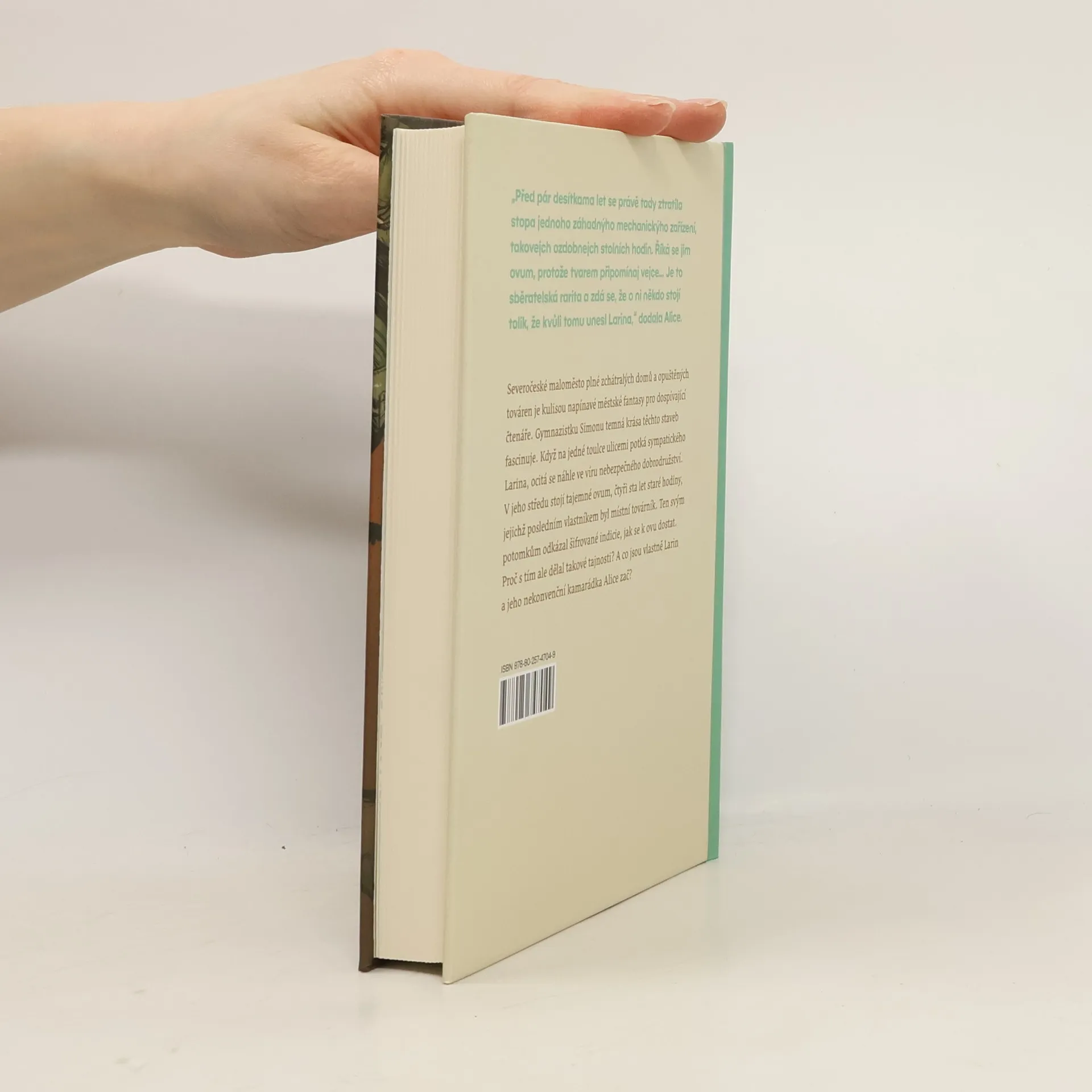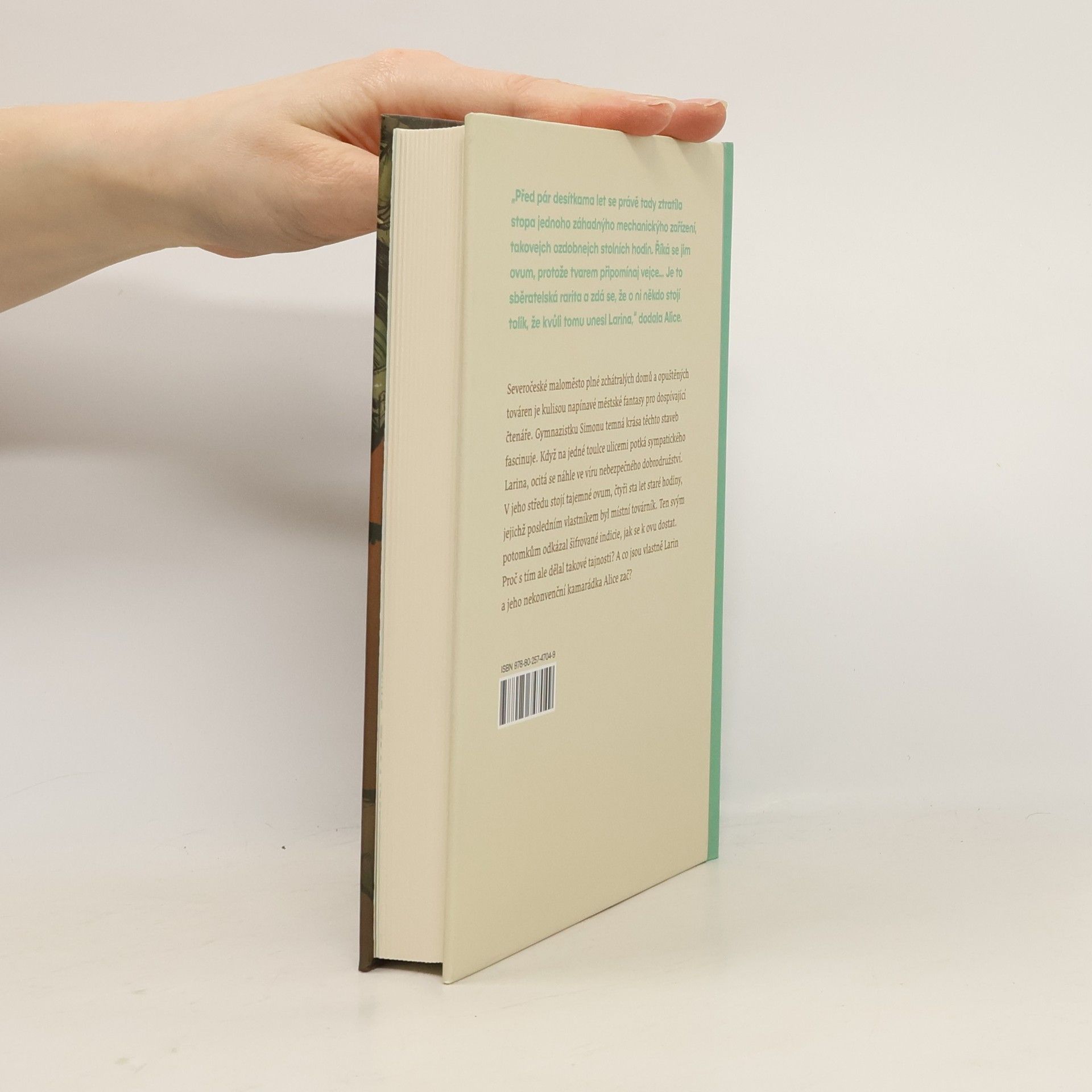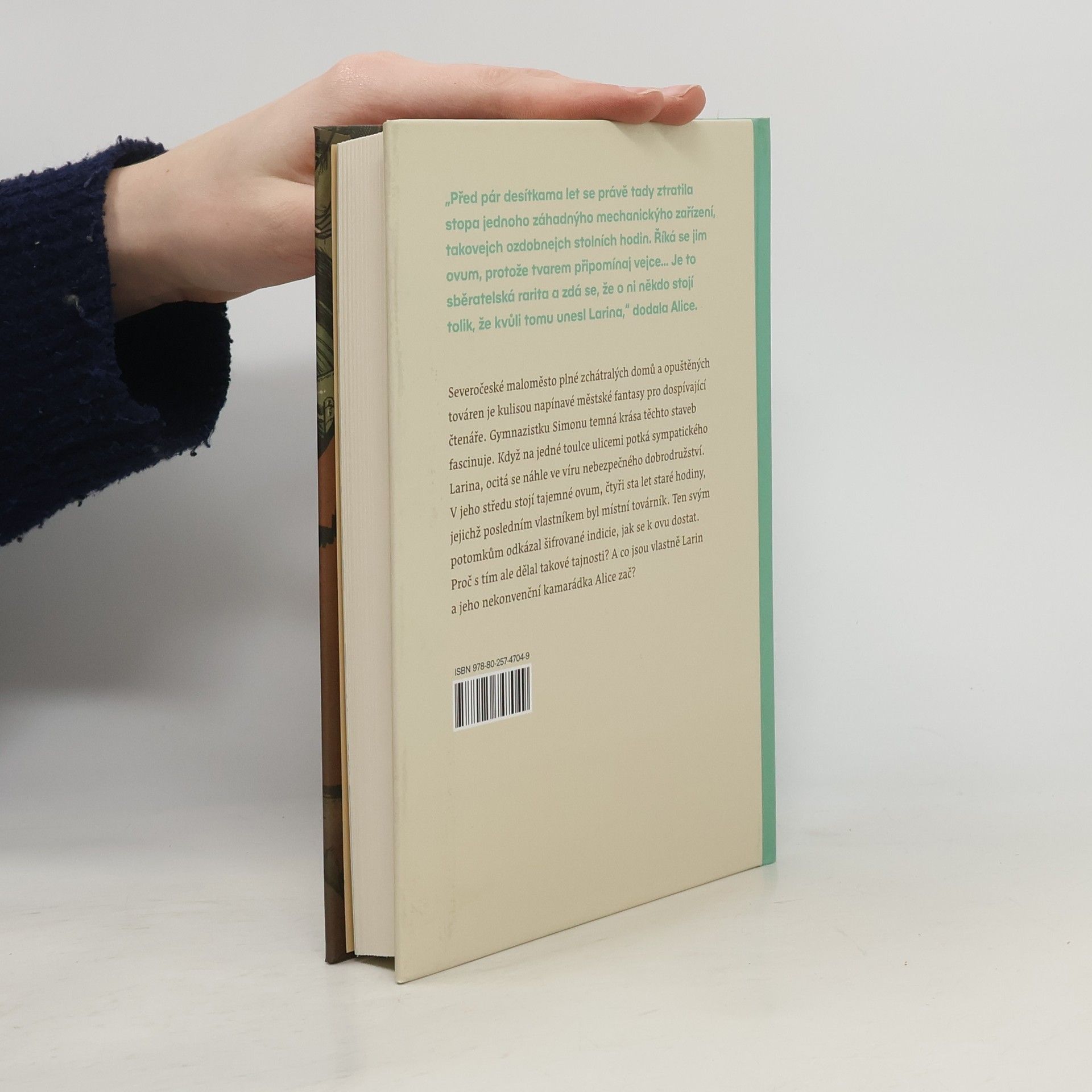 Severočeské maloměsto plné starých, zchátralých domů a pustnoucích továren je kulisou napínavé urban fantasy pro dospívající čtenáře. Gymnazistku Simonu temná krása staveb fascinuje. Na jedné toulce ulicemi potká Larina, který také prolézá staré budovy, ale z jiných důvodů. Než se o nich Simona může dozvědět víc, Larina někdo unese a ona se ocitá ve víru nebezpečného dobrodružství. V jeho středu stojí tajemné Ovum, čtyři sta let staré hodiny ve tvaru vejce, jejichž posledním známým vlastníkem byl místní továrník. Ten svým potomkům odkázal záhadné indicie, jak se k Ovu dostat. Proč s tím dělal takové tajnosti? A co jsou vlastně Larin a jeho nekonvenční kamarádka Alice zač? Nakladatelská anotace. Kráceno.