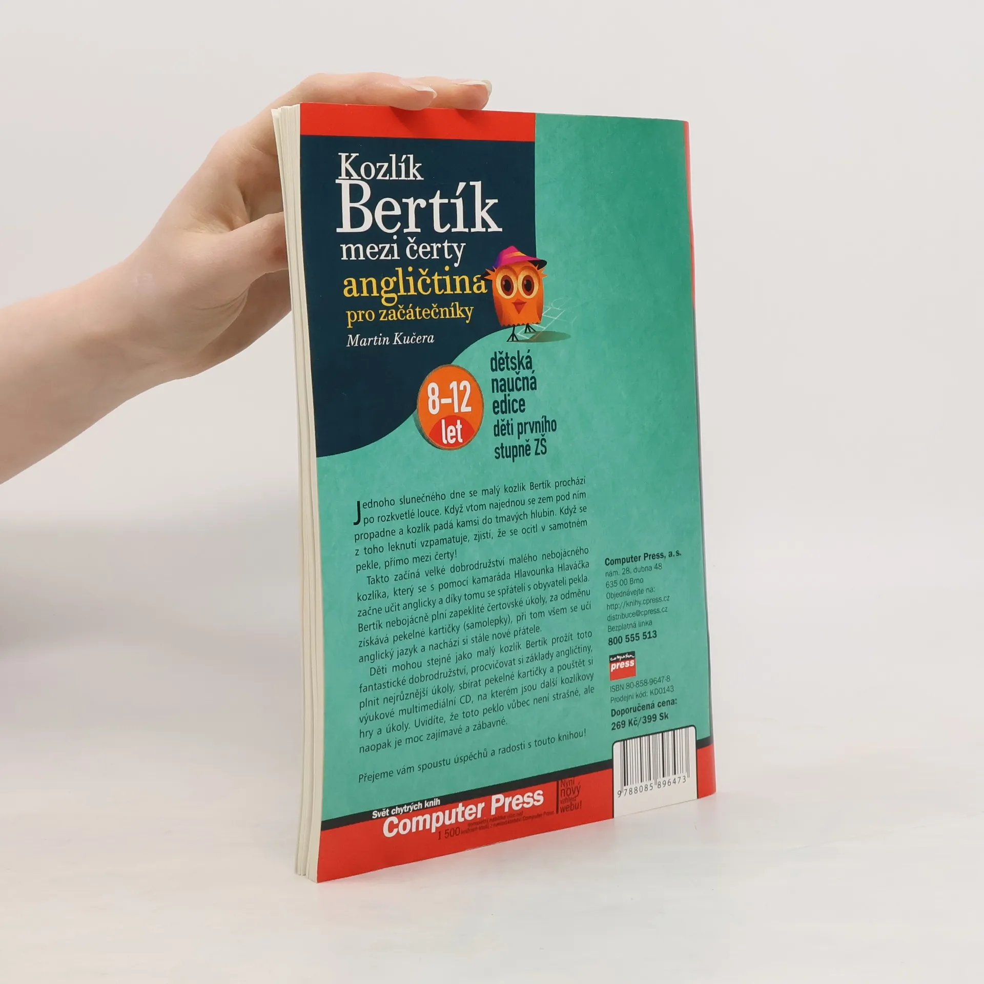 Jednoho slunečného dne se malý kozlík Bertík prochází po rozkvetlé louce. Když vtom najednou se zem pod ním propadne a kozlík padá kamsi do tmavých hlubin. Když se z toho leknutí vzpamatuje, zjistí, že se ocitl v samotném pekle, přímo mezi čerty! Takto začíná velké dobrodružství malého nebojácného kozlíka, který se s pomocí kamaráda Hlavounka začne učit anglicky a díky tomu se spřátelí s obyvateli pekla. Ke knize jsou přiloženy také samolepky. Uvidíte, že toto peklo vůbec není strašné, naopak je moc zajímavé a zábavné. Přejeme vám spoustu úspěchů a radosti s touto knihou!