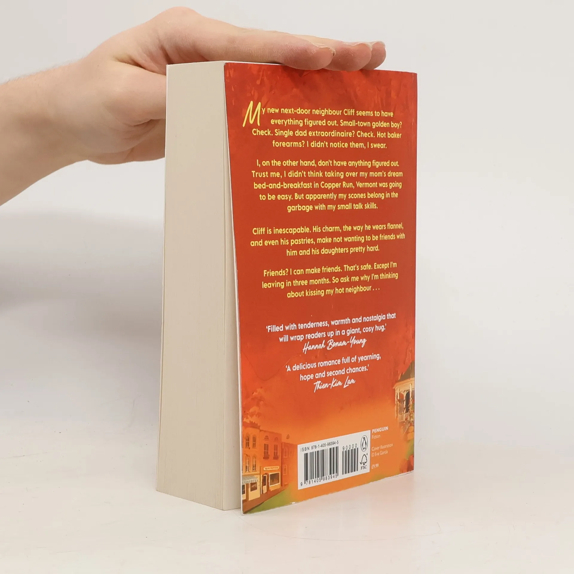 Grab your favourite fall candle, cuddle into a comfy blanket, and travel back in time to 1997 in this cozy, slow-burn romance perfect for fans Gilmore Girls, autumn and Laurie Gilmore! My new next-door neighbor seems to have everything figured out. Small town golden boy? Check. Single dad extraordinaire? Check. Hot baker forearms? I didn’t notice them, I swear. I, on the other hand, don’t–at all–have anything figured out. Trust me, I didn’t think taking over my mom’s dream bed and breakfast in Copper Run Vermont was going to be easy. It should be a good place to heal after my divorce. But apparently my scones belong in the garbage with my small talk skills. As pointed out by none other than Cliff. Cliff is inescapable. He knows exactly what people need–always. His charm, the way he wears flannel, and even his pastries, make not wanting to be friends with Cliff and his daughters pretty hard. Friends? I can make friends. That’s safe. Except I’m leaving in three months to pass the inn off to my little sister and get the promotion in Seattle I’ve been working towards. So ask me why I’m thinking about kissing my hot neighbor.