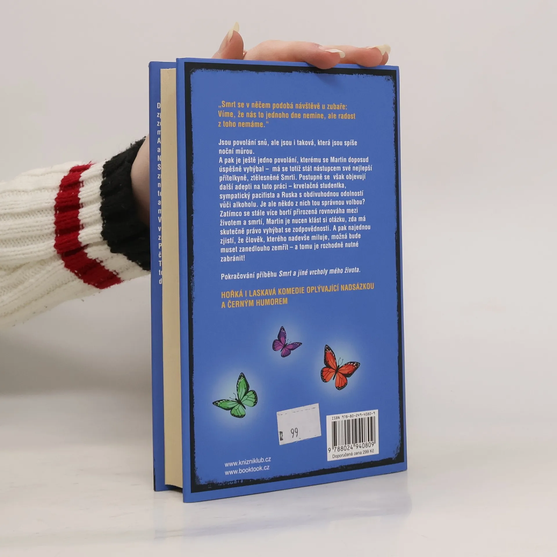 „Smrt se v něčem podobá návštěvě u zubaře: Víme, že nás to jednoho dne nemine, ale radost z toho nemáme.“ Jsou povolání snů, ale jsou i taková, která jsou spíše noční můrou. A pak je ještě jedno povolání, kterému se Martin doposud úspěšně vyhýbal – má se totiž stát nástupcem své nejlepší přítelkyně, ztělesněné Smrti. Postupně se však objevují další adepti na tuto práci… Je ale někdo z nich tou správnou volbou? Zatímco se stále více bortí přirozená rovnováha mezi životem a smrtí, Martin je nucen klást si otázku, zda má skutečně právo vyhýbat se zodpovědnosti. A pak najednou zjistí, že člověk, kterého nadevše miluje, možná bude muset zanedlouho zemřít – a tomu je rozhodně nutné zabránit! Pokračování příběhu Smrt a jiné vrcholy mého života.