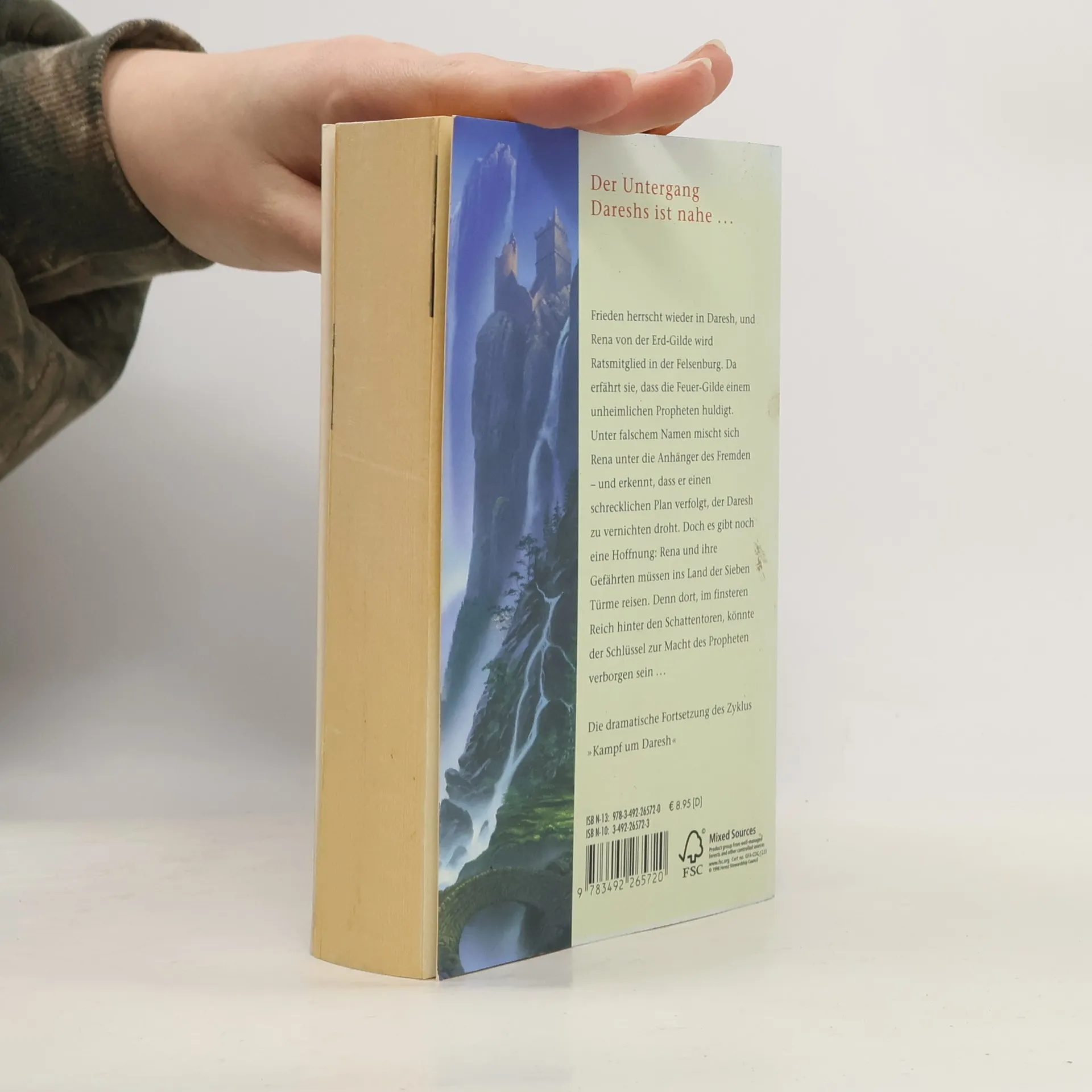 Frieden herrscht wieder in Daresh, und Rena von der Erd-Gilde wird Ratsmitglied in der Felsenburg. Da erfährt sie, dass die Feuer-Gilde einem unheimlichen Propheten huldigt. Unter falschem Namen mischt sich Rena unter die Anhänger des Fremden - und erkennt, dass er einen schrecklichen Plan verfolgt, der Daresh zu vernichten droht. Doch es gibt noch eine Hoffnung: Rena und ihre Gefährten müssen ins Land der Sieben Türme reisen. Denn dort, im finsteren Reich hinter den Schattentoren, könnte der Schlüssel zur Macht des Propheten verborgen sein...
