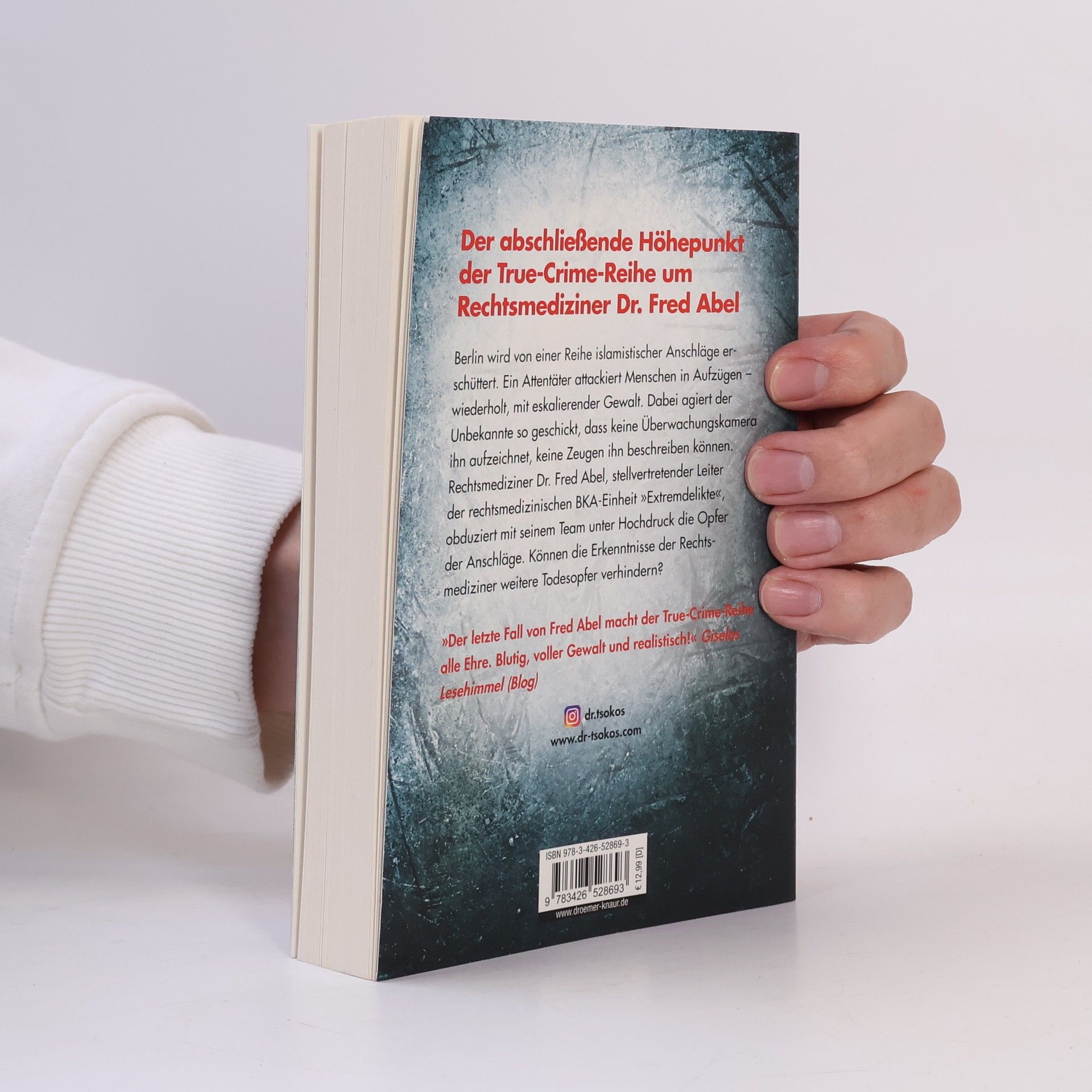 Der abschließende Höhepunkt von Michael Tsokos' True-Crime-Reihe um Rechtsmediziner Dr. Fred Abel, in dem ein religiöser Attentäter seine Opfer in Aufzügen attackiert Berlin wird von einer Reihe islamistischer Anschläge erschüttert. Ein Attentäter attackiert Menschen in Aufzügen – wiederholt, mit eskalierender Gewalt. Dabei agiert der Unbekannte so geschickt, dass keine Überwachungskamera ihn zeigt, keine Zeugen ihn beschreiben können. Rechtsmediziner Fred Abel, stellvertretender Leiter der rechtsmedizinischen BKA-Einheit „Extremdelikte“, obduziert mit seinem Team unter Hochdruck die Opfer der Anschläge. Können die Verletzungen der Getöteten Rückschlüsse auf den Täter geben? Unterdessen schwebt die frühere Lebensgefährtin seines besten Freundes Lars Moewig in akuter Lebensgefahr. Marie wurde Zeugin eines eiskalten Mordes, und trotz Polizeischutz in einem Safe House entgeht sie nur um Haaresbreite einem Mordanschlag. Abel ist sich sicher, dass sich ein Maulwurf in den eigenen Reihen befindet, der ihm und Moewig immer einen Schritt voraus ist. In seinem letzten Fall muss Rechtsmediziner Fred Abel nicht nur sein gesamtes rechtsmedizinisches Können, sondern auch sein langjähriges kriminalistisches Wissen aufbieten, um die Täter zu finden und das Morden zu stoppen. Michael Tsokos' True-Crime-Thriller um Dr. Fred Abel sind in folgender Reihenfolge erschienen: Zerschunden Zersetzt Zerbrochen Zerrissen Zerteilt