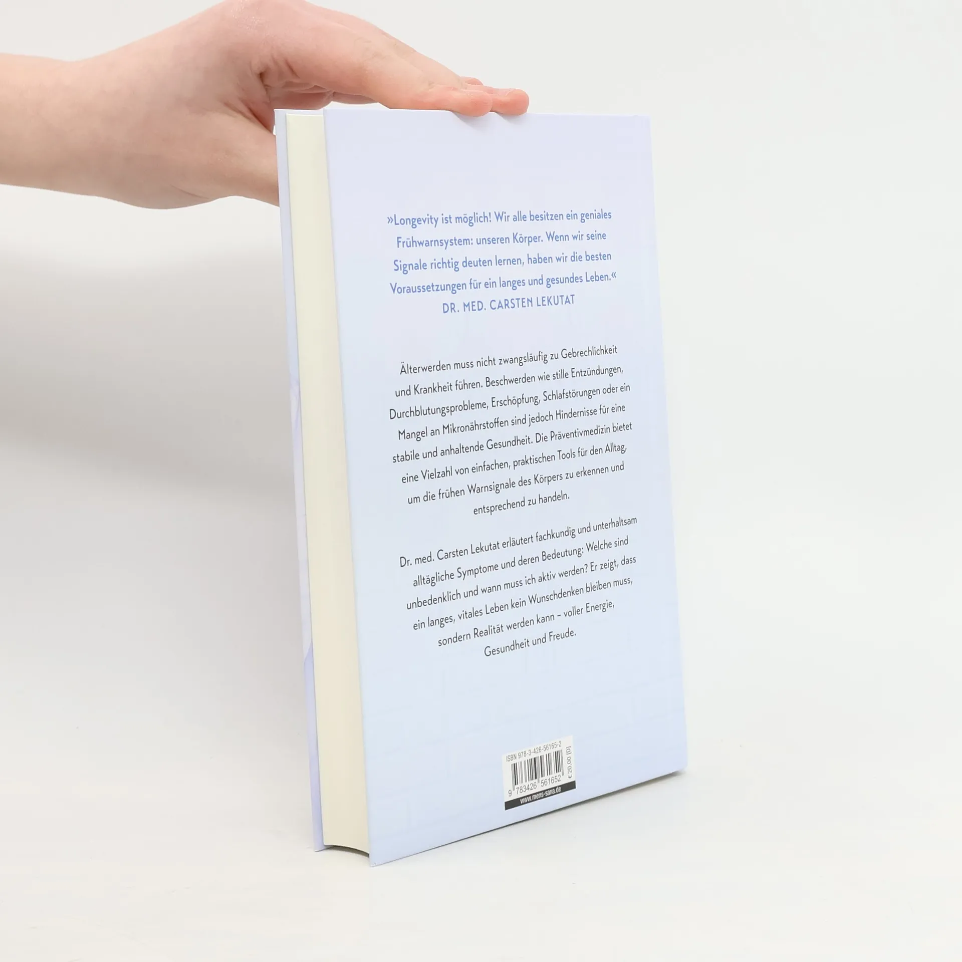 Der neue Gesundheitsratgeber des Bestsellerautors - mit dem richtigen Lebensstil zu Vitalität und Longevity Lassen Sie sich nicht täuschen: Auch wenn Alterung normal ist, sind die meisten Beschwerden eben nicht normal. Wir mögen altern, müssen jedoch nicht zwangsläufig alt und gebrechlich werden – besonders nicht, wenn wir die Signale unseres Körpers verstehen und entsprechend handeln. Stille Entzündungen, Hormonstörungen, Erschöpfung, Schlafprobleme oder ein Mangel an wichtigen Mikronährstoffen – all diese Probleme stehen einem langen und gesunden Leben im Weg. Dr. med. Carsten Lekutat klärt über alltägliche Symptome auf, damit wir das Frühwarnsystem des Körpers entschlüsseln lernen und die richtigen Entscheidungen treffen. Wirksame Tools, die man einfach in den Alltag integrieren kann Dr. Carsten Lekutat erläutert fachkundig und unterhaltsam, auf was wir z. B. bei der Ernährung, beim Umgang mit Stress oder unseren Schlafgewohnheiten achten müssen. Ebenso benennt er die entscheidenden präventivmedizinischen Vorsorgeuntersuchungen, die jeder von uns in Betracht ziehen sollte. Langlebigkeit heißt: Ein langes und gesundes Leben führen, während wir unsere Lebenszeit vital und aktiv gestalten – über die gesamte Lebensspanne.