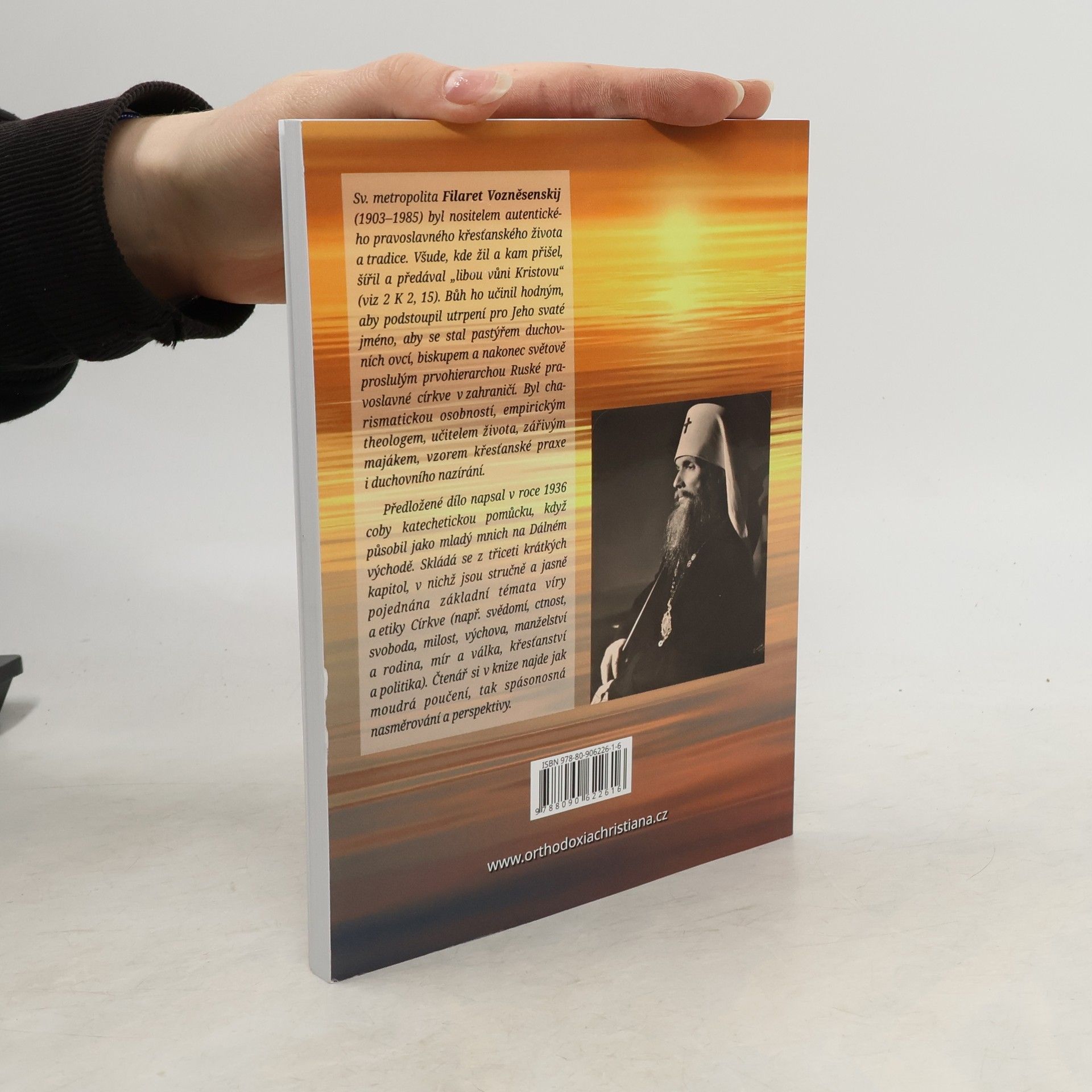Sv. metropolita Filaret Vozněsenskij (1903–1985) byl nositelem autentického pravoslavného křesťanského života a tradice. Všude, kde žil a kam přišel, šířil a předával „libou vůni Kristovu" (viz 2 K 2, 15). Bůh ho učinil hodným, aby podstoupil utrpení pro Jeho svaté jméno, aby se stal pastýřem duchovních ovcí, biskupem a nakonec světově proslulým prvohierarchou Ruské pravoslavné církve v zahraničí. Byl charismatickou osobností, empirickým teologem, učitelem života, zářivým majákem, vzorem křesťanské praxe i duchovního nazírání. Předložené dílo napsal v roce 1936 coby katechetickou pomůcku, když působil jako mladý mnich na Dálném východě. Skládá se z třiceti krátkých kapitol, v nichž jsou stručně a jasně pojednána základní témata víry a etiky Církve (např. svědomí, ctnost, svoboda, milost, výchova, manželství a rodina, mír a válka, křesťanství a politika). Čtenář si v knize najde jak moudrá poučení, tak spásonosná nasměrování a perspektivy.