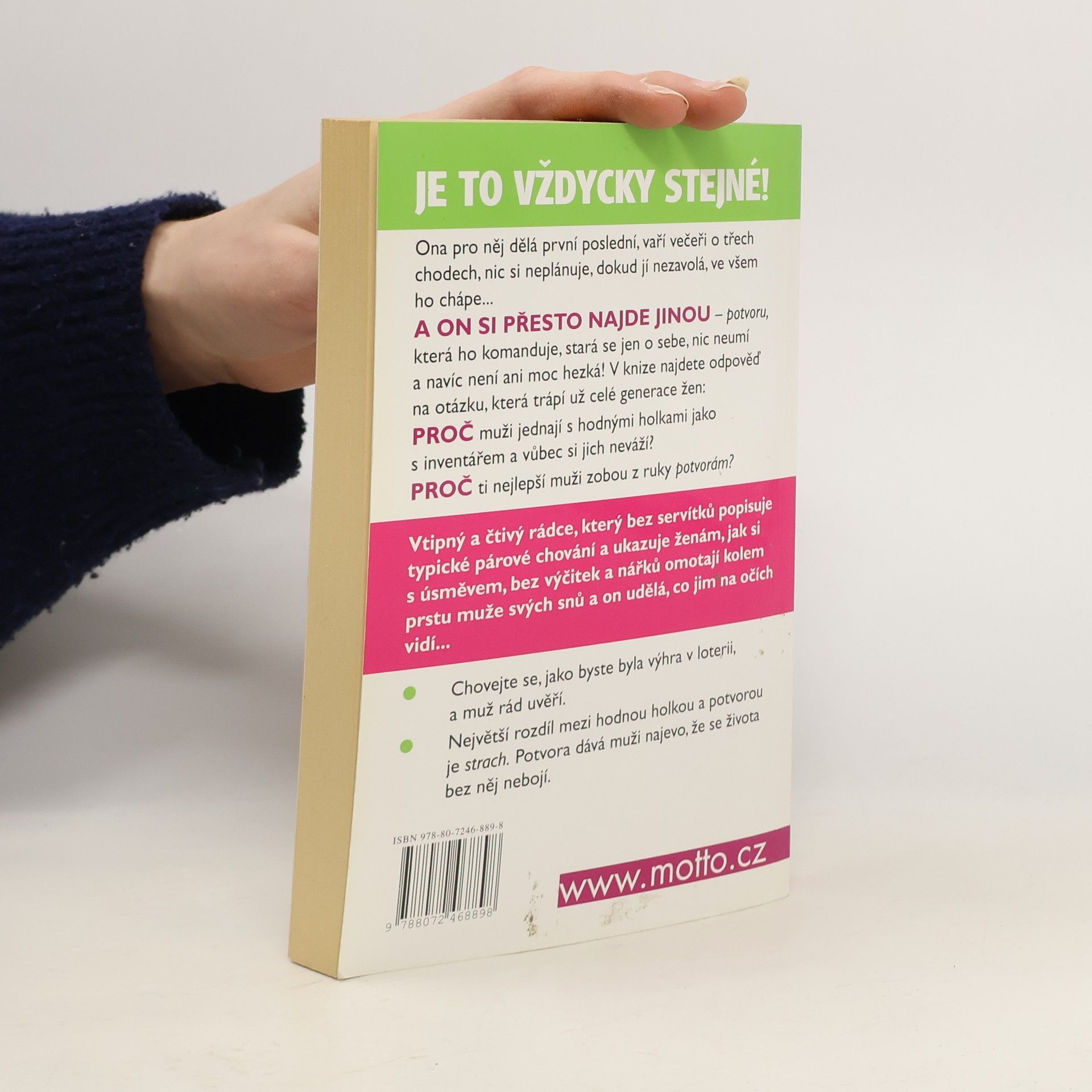 Nové, rozšířené vydání! Proč muži jednají s hodnými holkami jak s inventářem, ale zobou z ruky potvorám? Vtipná kniha, která otevřeně a bez zastírání popisuje typické párové chování. Poradí vám, jak si s úsměvem, bez výčitek a nářků, omotáte kolem prstu muže svých snů. Dotisk v roce 2019.