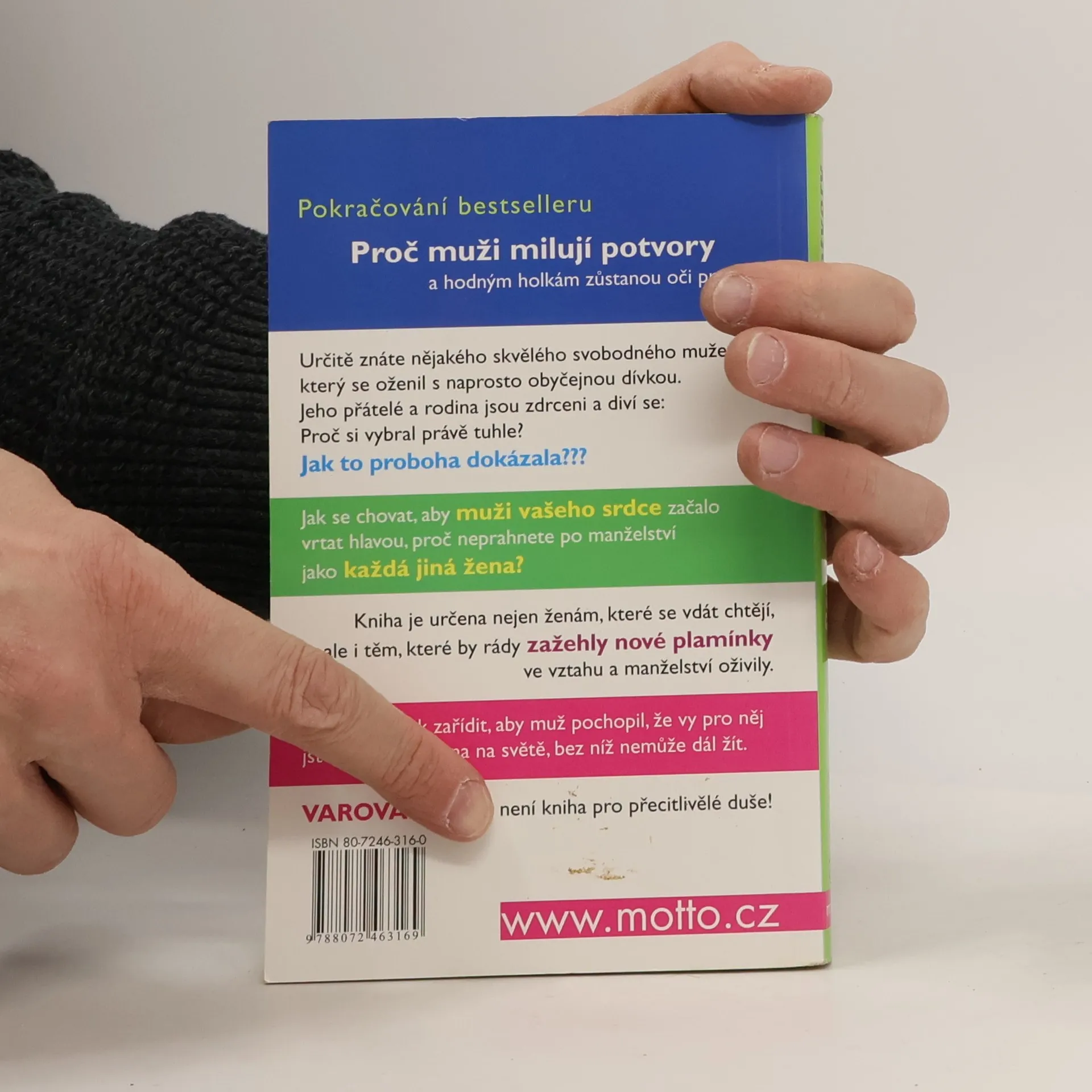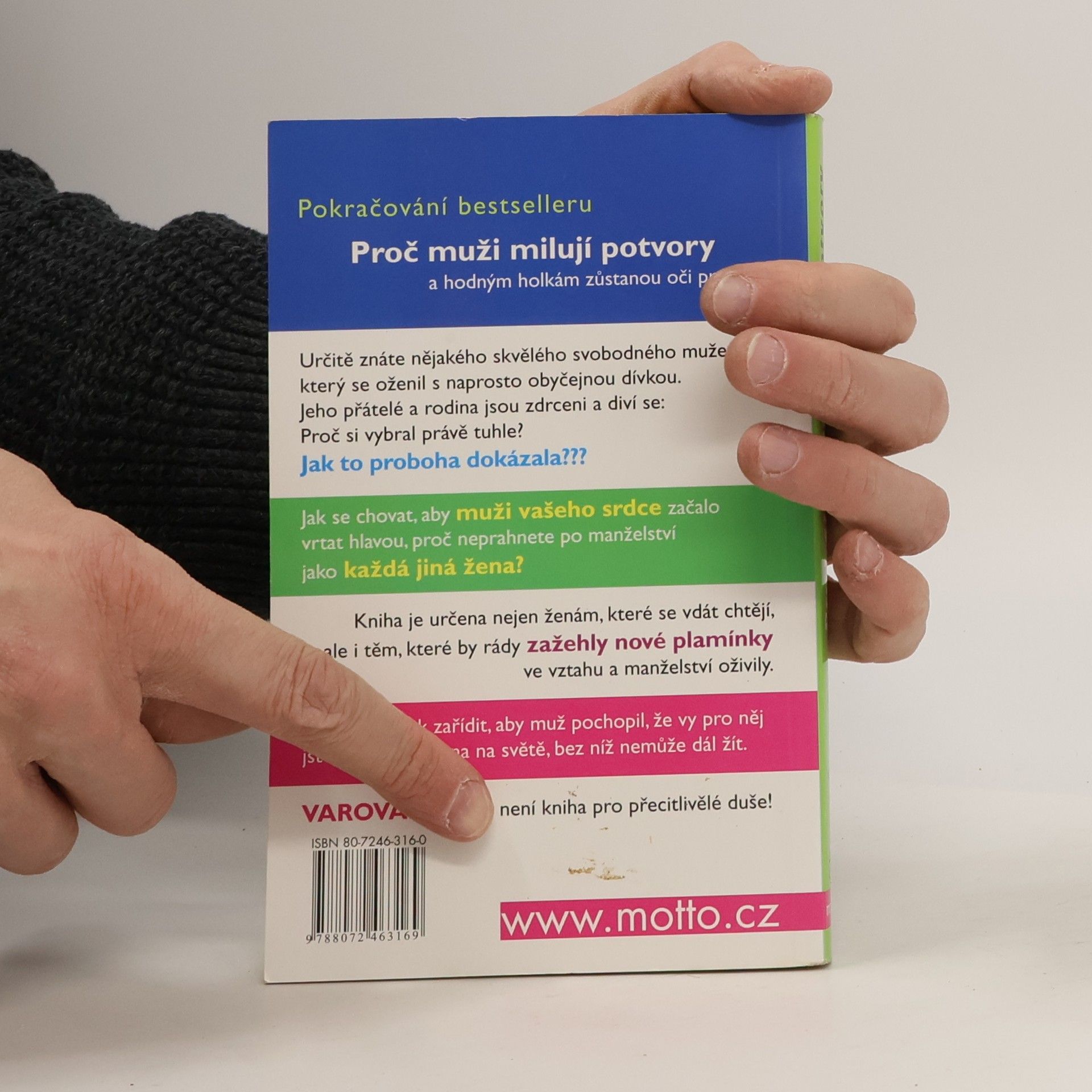 Pokračování bestselleru: Proč muži milují potvory a hodným holkám zůstanou oči pro pláč. Pro všechny ženy, které touží po vdavkách! Určitě znáte nějakého skvělého svobodného muže, který se oženil s naprosto obyčejnou dívkou. Jeho přátelé a rodina jsou naprosto zdrceni a diví se: Proč si vybral právě tuhle? Jak to proboha dokázala? Kniha je určena nejen ženám, které se vdávat chtějí, ale i těm, které by rády zažehly nové plamínky ve vztahu a manželství oživily.