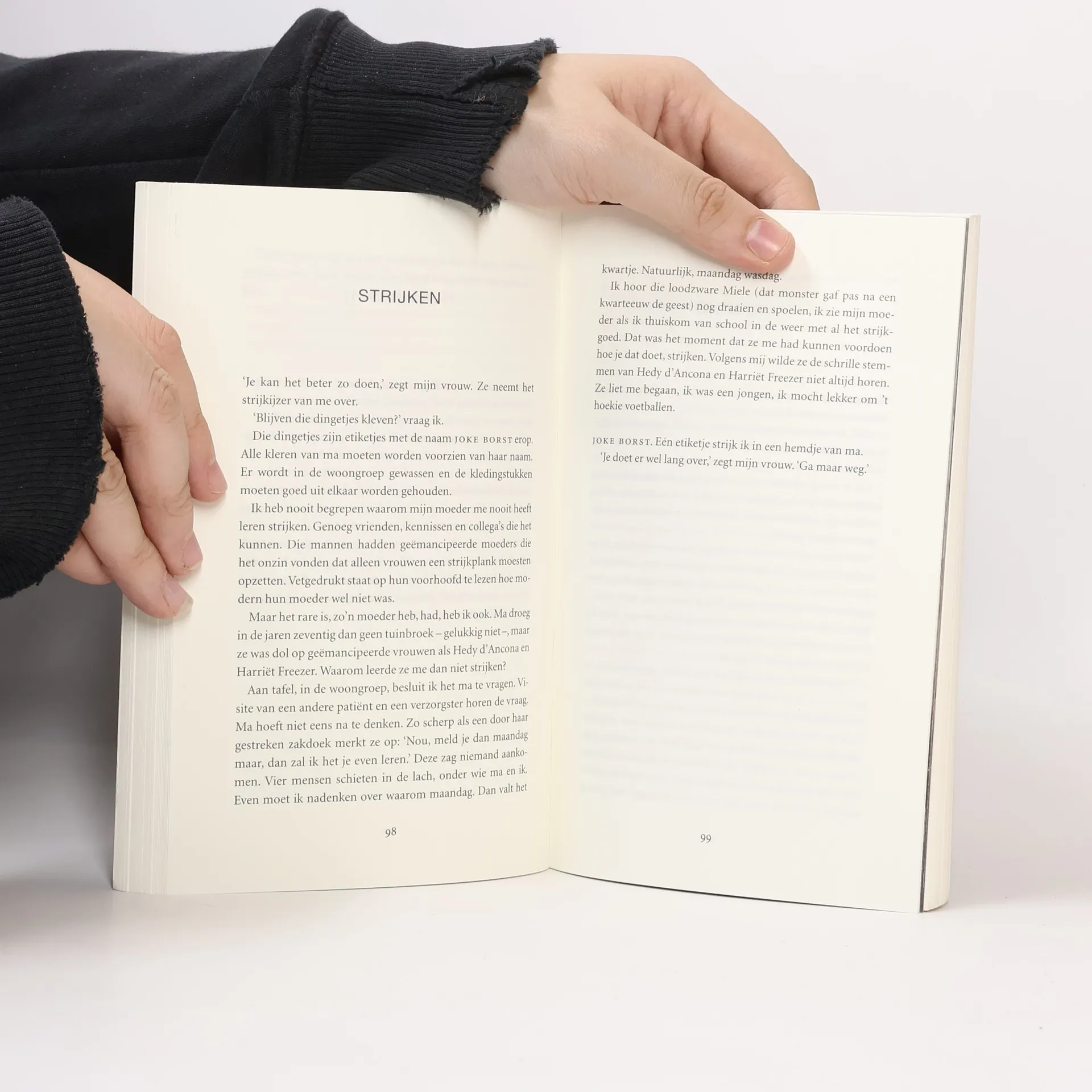 Hartverscheurend boek van Hugo Borst over zijn dementerende moeder, liefdevol en met veel gevoel geschreven. Hugo Borst vindt ‘mantelzorger’ een raar woord, maar hij is het wel. Al drie jaar verzorgt hij zijn zesentachtigjarige moeder, die aan dementie lijdt. Op ontroerende en vaak geestige wijze schrijft hij over de ingrijpende gevolgen van haar aftakelende geest. Ook beschrijft hij hoe de onvermijdelijke verhuizing naar een verpleeghuis verloopt. Intussen haalt hij herinneringen op aan zijn jeugd en aan zijn moeder in betere tijden. Ma is een liefdevol en prachtig geschreven portret van een moeder en haar zoon. Ma zit hier nu drie weken en elke dag is het raak. Liever zou ik eventjes niet meer gaan. ‘Het is hier verschrikkelijk,’ zegt ze. Dan zwijgt ze. Ostentatief. Ik leg mijn hand op haar knie. Ze wijst naar de bovenkant van haar hoofd en zegt: ‘Je kan beter mijn kop inslaan.’ ‘Dan kom ik in de gevangenis, ma.’ ‘Dat is waar,’ zegt ze en ze peinst en dat doe ik ook, peinzen. Peinzen over haar hunkering naar een genadeklap.