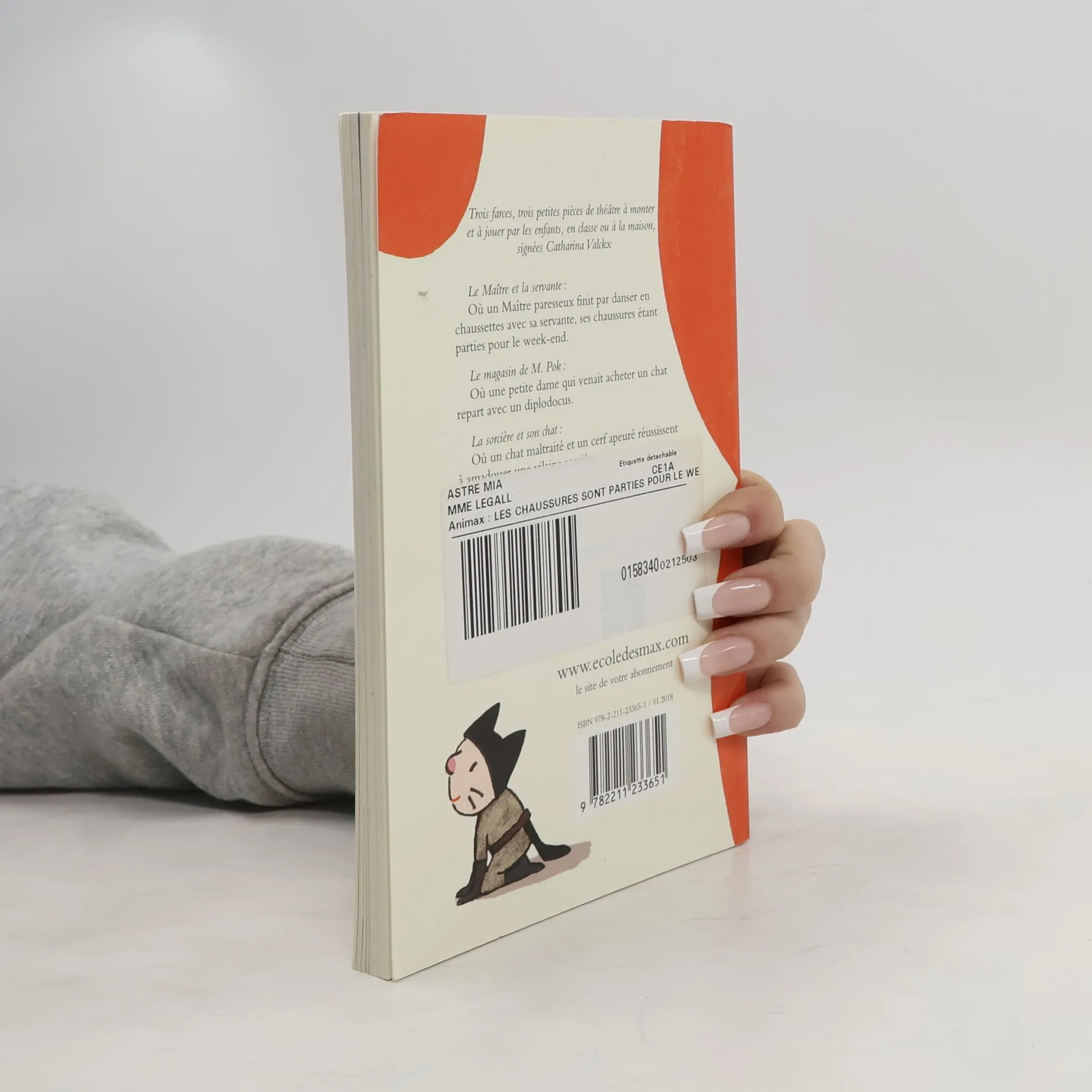 Résumé :Trois farces, trois petites pièces de théâtre à monter et à jouer par les enfants, en classe ou à la maison, signées Catharina ValckxLe Maître et la servante :Où un Maître paresseux finit par danser en chaussettes avec sa servante, ses chaussures étant parties pour le week-end.Le magasin de M. Pok :Où une petite dame qui venait acheter un chat repart avec un diplodocus.La sorcière et son chat :Où un chat maltraité et un cerf apeuré réussissent à amadouer une vilaine sorcière.