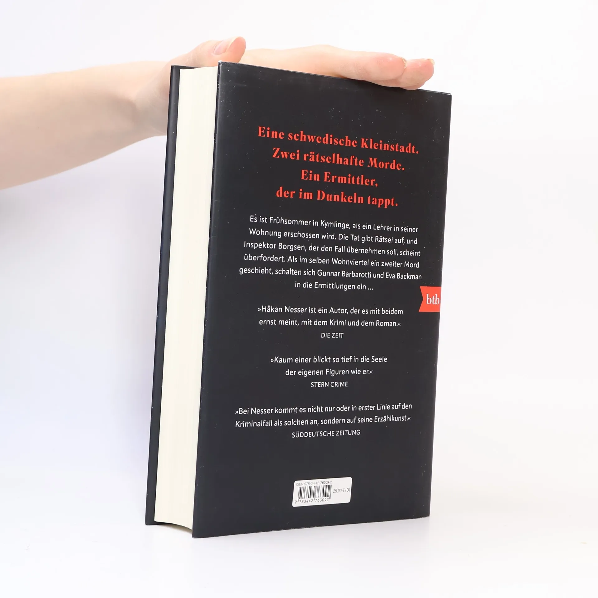 Eine schwedische Kleinstadt. Zwei rätselhafte Morde. Ein Ermittler, der im Dunkeln tappt. Es ist Frühsommer und Prüfungszeit in Kymlinge. Sportlehrer und ehemaliges Multitalent Allan Fremling beschließt eines Abends, seinem strengen Ernährungsplan zum Trotz, eine Pizza nach Hause zu bestellen. Noch bevor sie abgekühlt ist, liegt er tot in seinem eigenen Hausflur. Zwei Schüsse in die Brust, einer in den Kopf. Inspektor Borgsen, der wegen seines melancholischen Gemüts oft Sorgsen genannt wird, soll sich der Sache annehmen. Als sich jedoch praktisch direkt unter Borgsens Balkon ein zweiter Mord ereignet, ist es Zeit für Gunnar Barbarotti und dessen Frau Eva Backman, zu übernehmen. Die Morde geben Rätsel auf. Fast sieht es so aus, als stelle jemand sich die Frage: Ist es immer falsch zu töten?