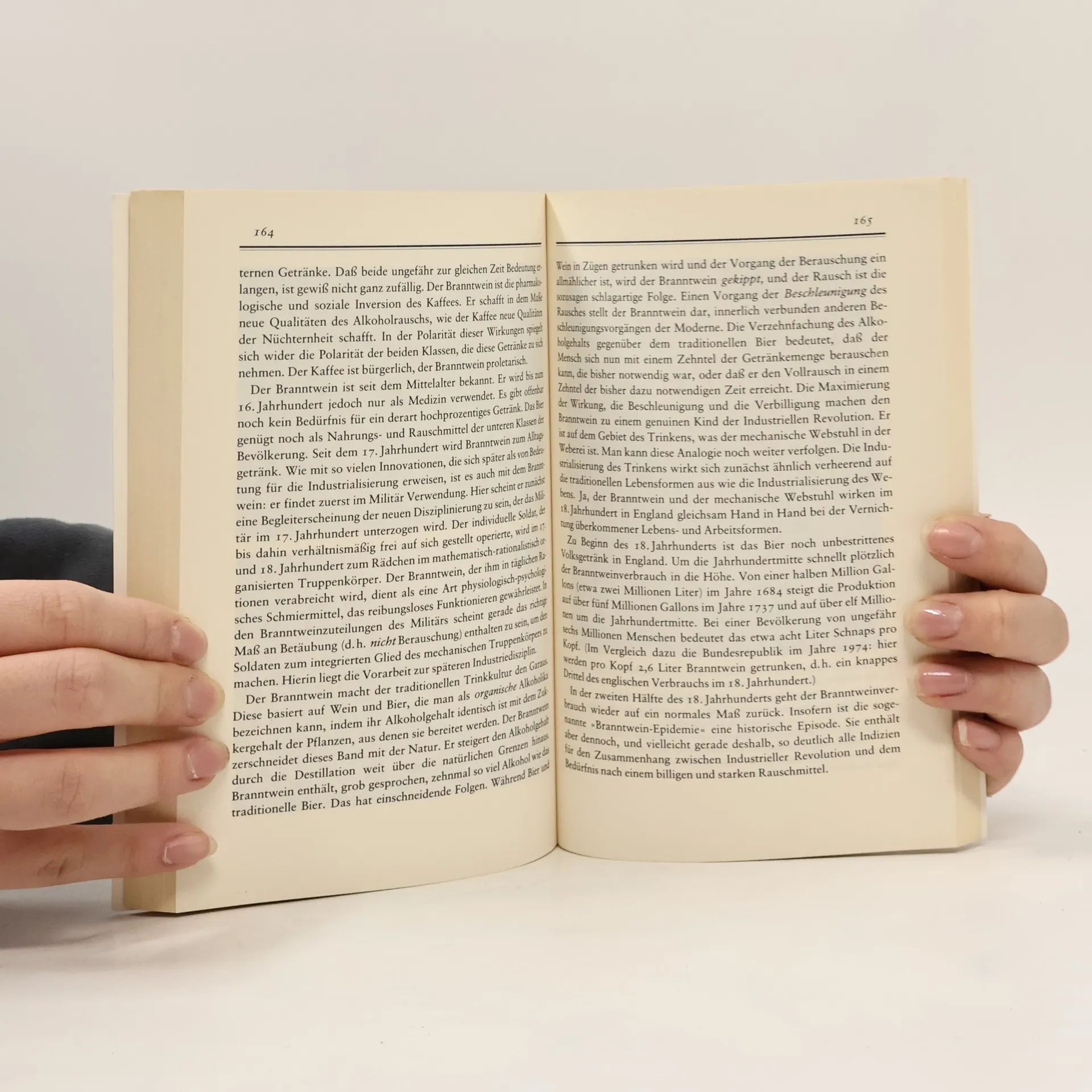 Jede Gesellschaft hat die Genuß- und Rauschmittel, die sie verdient, braucht und verträgt. Im Jahr 1194 erhielt der König von Schottland bei seinem Besuch König Richard I. von England täglich zwei Pfund Pfeffer und vier Pfund Zimt. Diese Gabe war im christlichen Mittelalter nicht ungewöhnlich: Pfeffer war nicht nur Gewürz, sondern auch Statussymbol und oft Zahlungsmittel. Mit der Entdeckung des Seewegs nach Indien begannen orientalische Luxuswaren, die grobe Ritterkultur zu verändern und wurden entscheidend für die europäische Wirtschaft. Die Frage stellt sich, warum in Europa zu bestimmten Zeiten neue Genußstoffe auftauchen. Sind Kaffee, Tee oder Tabak Zufälle kolonialer Entdeckung oder spiegeln sie neue Genußbedürfnisse wider? In Deutschland, ohne Kolonien, musste Kaffee eingeführt werden, was eine heftige Kampagne gegen dieses „undeutsche“ Getränk auslöste. Als die Kaffee-Sucht nicht durch Bier und Wein gebremst werden konnte, fand man Ersatz in Zichorienkaffee. Zum Kaffee gehörte auch Tabak, der im 17. Jahrhundert „getrunken“ wurde, bevor er später in Form von Pfeifen und Zigaretten genossen wurde. Eine ähnliche Beschleunigung zeigt sich bei alkoholischen Getränken: Die Entwicklung des Tresens war notwendig, um während der Industrialisierung den schnellen Bedarf an harten Getränken zu decken.