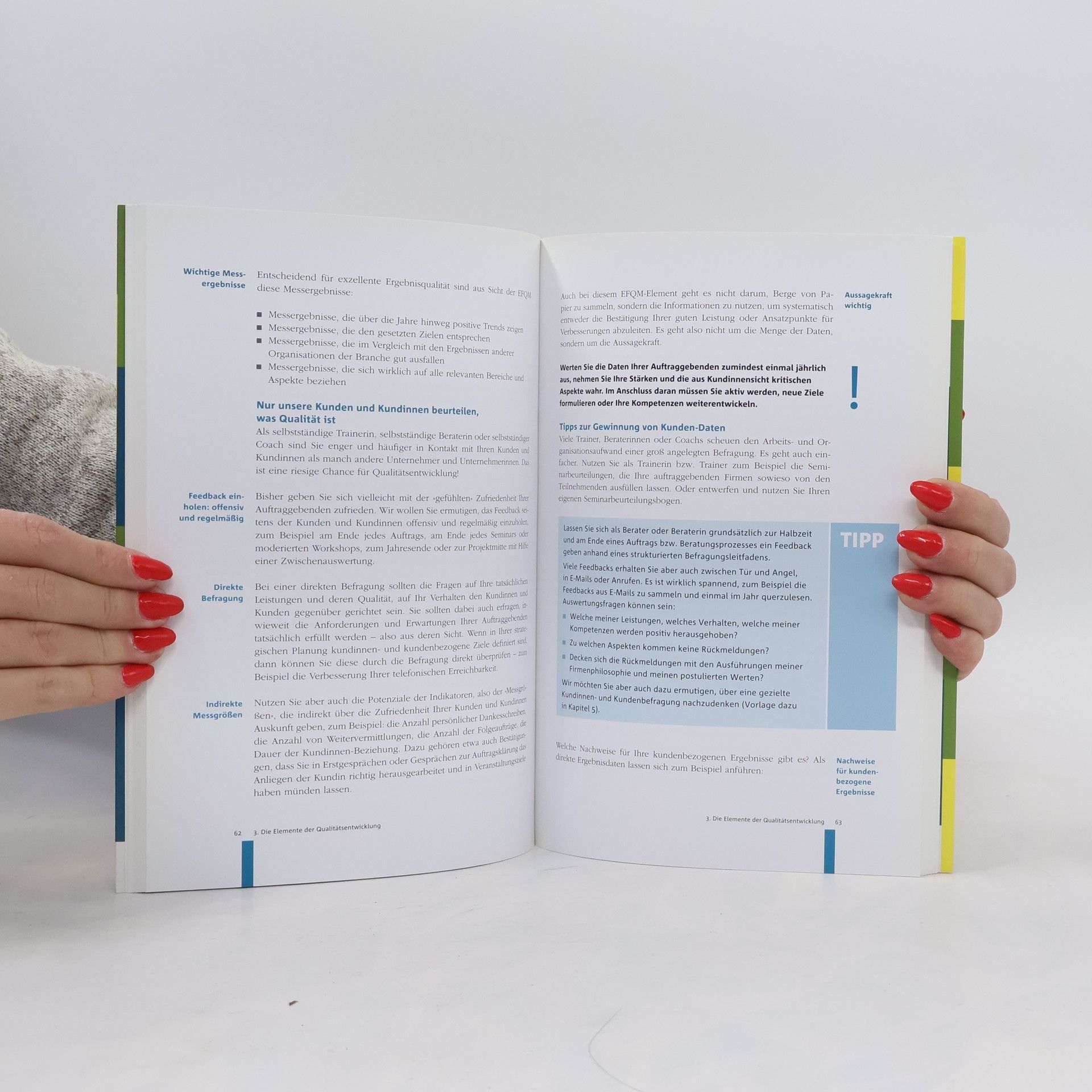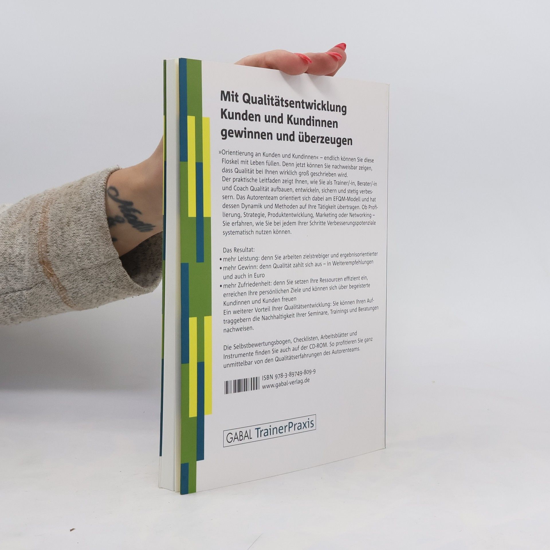 Ein praxisorientiertes Arbeitsbuch, in dem die Qualitätsentwicklung nach EFQM (European Foundation for Quality Management) "übersetzt" wurde für Coachs, Trainerinnen und Trainer, Beraterinnen und Berater. Kernstück des Buches sind zwanzig Instrumente zur Qualitätsverbesserung, die sich für die eigene Bearbeitung zusammen mit allen Checklisten und Selbstbewertungsbögen zusätzlich auf einer beiliegenden CD-ROM befinden.