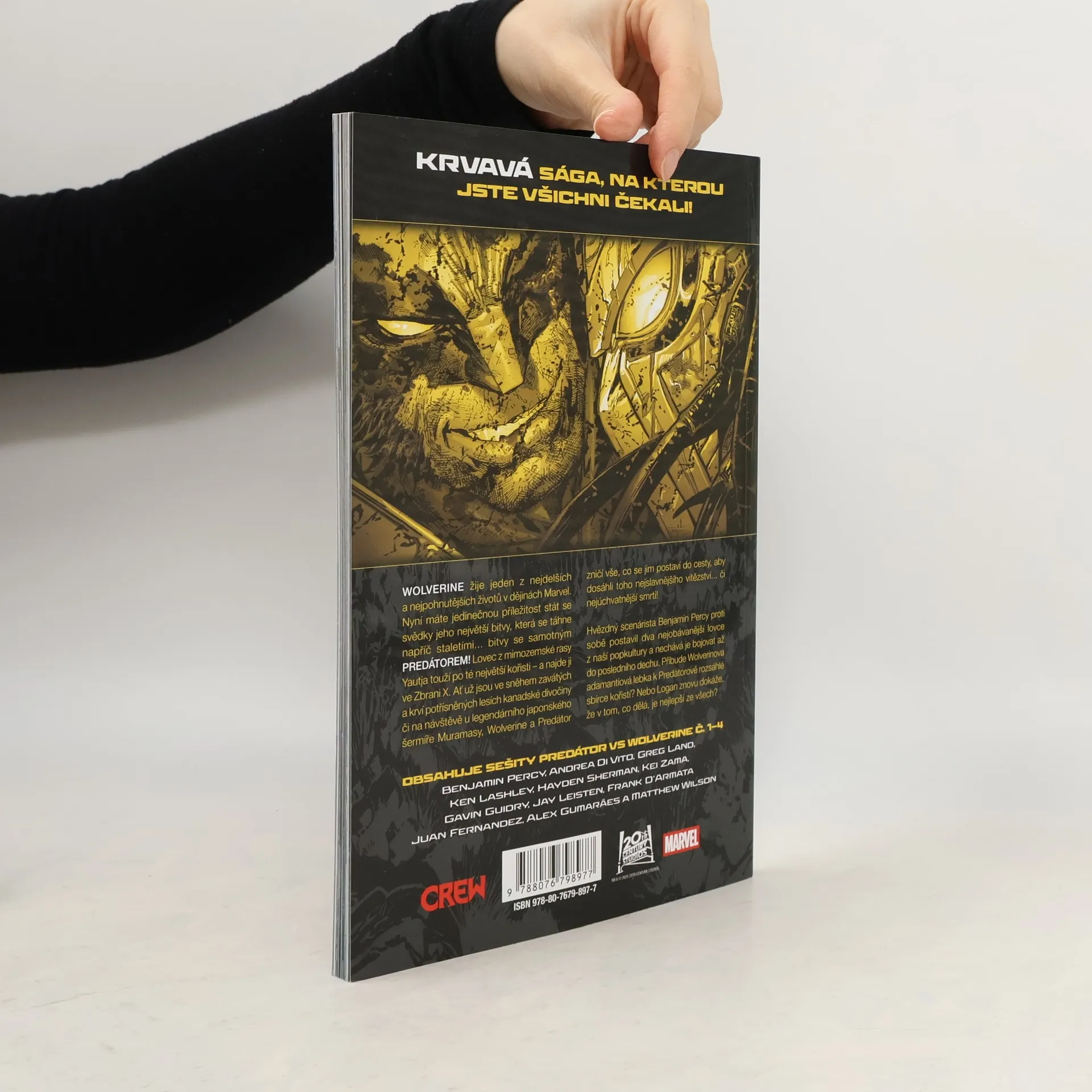 Krvavá sága, na kterou jste všichni čekali! WOLVERINE žije jeden z nejdelších a nejpohnutějších životů v dějinách Marvel Comics. Nyní máte jedinečnou příležitost stát se svědky jeho největší bitvy, která se táhne napříč staletími... bitvy se samotným PREDÁTOREM! Lovec z mimozemské rasy Yautja touží po té největší kořisti – a najde ji ve Zbrani X. Ať už jsou ve sněhem zavátých a krví potřísněných lesích kanadské divočiny, či na návštěvě u legendárního japonského šermíře Muramasy, Wolverine a Predátor zničí vše, co se jim postaví do cesty, aby dosáhli toho nejslavnějšího vítězství... či nejúchvatnější smrti! Hvězdný scenárista Benjamin Percy proti sobě postavil dva nejobávanější lovce z naší popkultury a nechává je bojovat až do posledního dechu. Přibude Wolverinova adamantiová lebka k Predátorově rozsáhlé sbírce kořistí? Nebo Logan znovu dokáže, že v tom, co dělá, je nejlepší ze všech? Souborné vydání PREDÁTOR VS WOLVERINE Č. 1–4