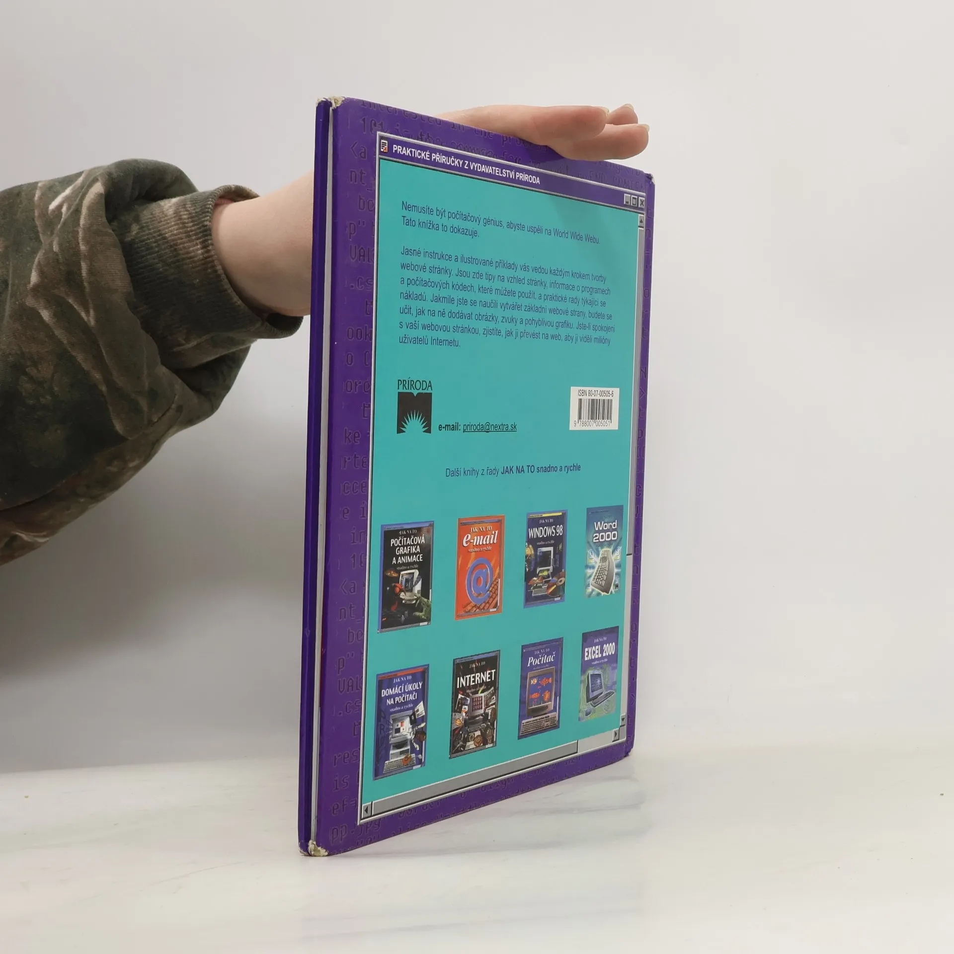 Bohatě ilustrovaná publikace seznamuje začínající uživatele se základním postupem vytváření jednoduché webové stránky. V publikaci jsou popsány dvě metody, které lze použit k tvorbě webové stránky - pomocí webového editoru (Microsoft FrontPage Express,...) nebo pomocí počítačového kódu HTML. Uživatel se seznámí s celým procesem tvorby webovské stránky od naplánování, vytvoření, vkládání nejrůznějších efektů (obrázky, zvuky, animace) až po zveřejnění na webu. Vše je doplněno mnoha názornými ukázkami a slovníkem termínů.