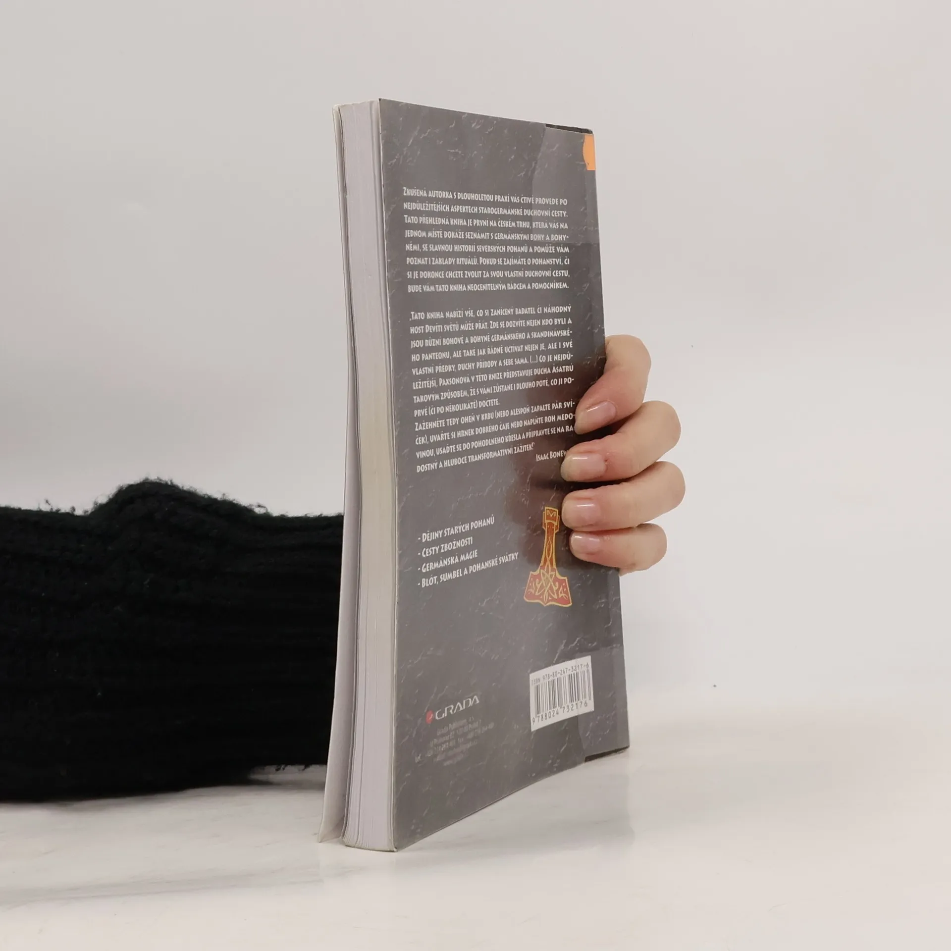 Podnázev: Na duchovní cestě Ásatrú. Zkušená autorka s dlouholetou praxí vás provede po nejdůležitějších aspektech starogermánské duchovní cesty. Tato přehledná kniha je první na českém trhu, která vás na jednom místě dokáže seznámit s germánskými bohy a bohyněmi, se slavnou historií severských pohanů a pomůže vám poznat i základy rituálů. Pokud se zajímáte o pohanství, či si je dokonce chcete zvolit za svou vlastní duchovní cestu, bude vám tato kniha neocenitelným rádcem a pomocníkem. Kniha nabízí vše, co si zanícený badatel či náhodný host Devíti světů může přát. Zde se dozvíte nejen kdo byli a jsou různí bohové a bohyně germánského a skandinávského panteonu, ale také jak řádně uctívat nejen je, ale i své vlastní předky, duchy přírody a sebe sama. (…) Co je nejdůležitější, Paxsonová v této knize představuje ducha Ásatrú takovým způsobem, že s vámi zůstane i dlouho poté, co ji poprvé (či po několikáté) dočtete. (…) Zažehněte tedy oheň v krbu (nebo alespoň zapalte pár svíček), uvařte si hrnek dobrého čaje nebo naplňte roh medovinou, usaďte se do pohodlného křesla a připravte se na radostný a hluboce transformativní zážitek!