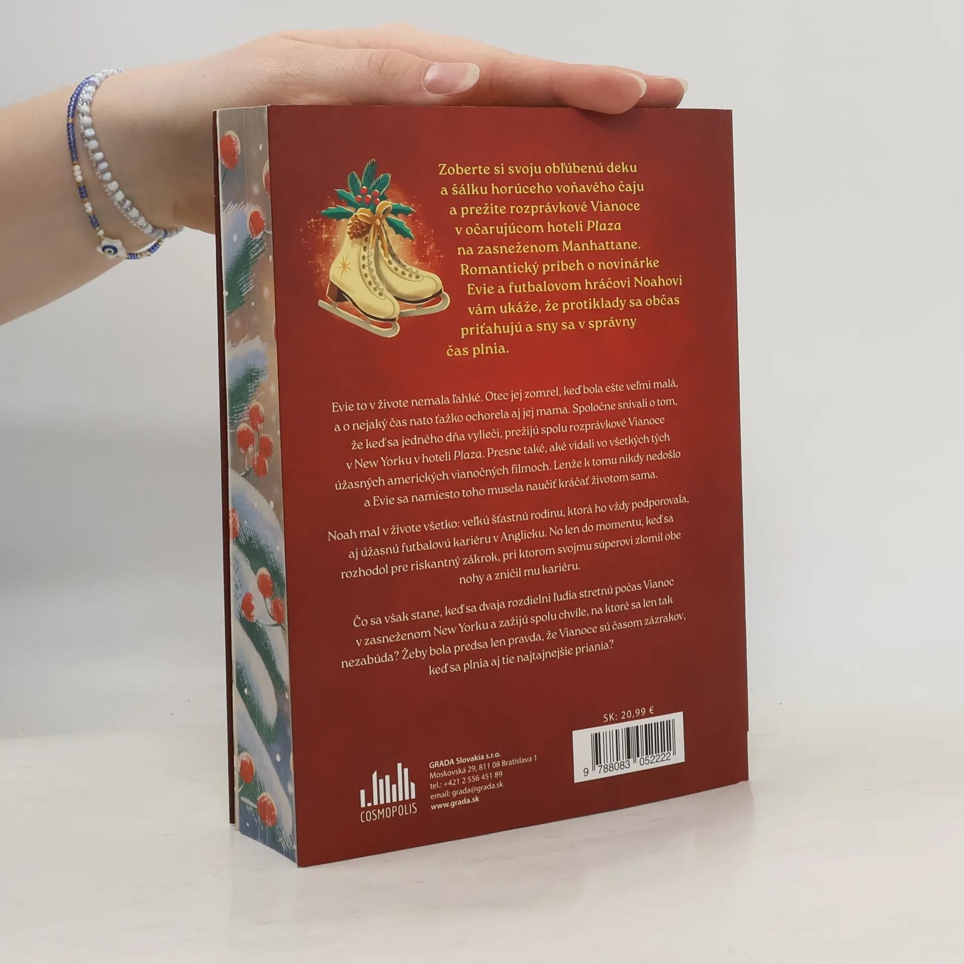 Evie to v živote nemala ľahké. Otec jej zomrel, keď bola ešte veľmi malá, a o nejaký čas nato ťažko ochorela aj jej mama. Spoločne snívali o tom, že keď sa jedného dňa vylieči, prežijú spolu rozprávkové Vianoce v New Yorku v hoteli Plaza. Presne také, aké vídali vo všetkých tých úžasných amerických vianočných filmoch. Lenže k tomu nikdy nedošlo a Evie sa namiesto toho musela naučiť kráčať životom sama. Noah mal v živote všetko: veľkú šťastnú rodinu, ktorá ho vždy podporovala, aj úžasnú futbalovú kariéru v Anglicku. No len do momentu, keď sa rozhodol pre riskantný zákrok, pri ktorom svojmu súperovi zlomil obe nohy a zničil mu kariéru. Čo sa však stane, keď sa dvaja rozdielni ľudia stretnú počas Vianoc v zasneženom New Yorku a zažijú spolu chvíle, na ktoré sa len tak nezabúda? Žeby bola predsa len pravda, že Vianoce sú časom zázrakov, keď sa plnia aj tie najtajnejšie priania?