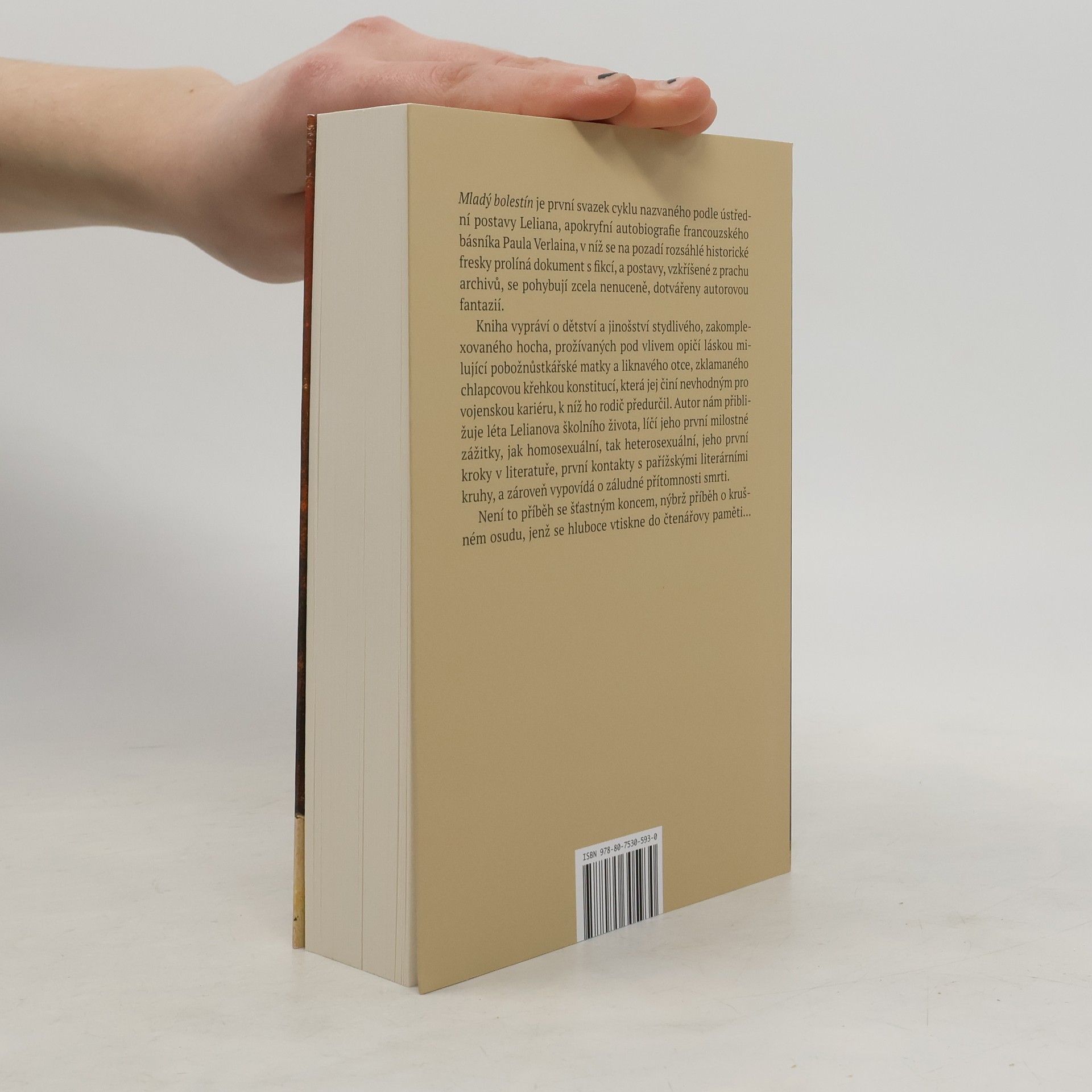 Mladý bolestín je první svazek cyklu nazvaného podle ústřední postavy Lelian, apokryfní autobiografie francouzského básníka Paula Verlaina, v níž se na pozadí rozsáhlé historické fresky prolíná dokument s fikcí a postavy, vzkříšené z prachu archivů, se pohybují zcela nenuceně, dotvářeny autorovou fantazií. Kniha vypráví o dětství a jinošství stydlivého, zakomplexovaného hocha, prožívaných pod vlivem opičí láskou milující pobožnůstkářské matky a liknavého otce, zklamaného chlapcovou křehkou konstitucí, která jej činí nevhodným pro vojenskou kariéru, pro niž ho rodič předurčil. Autor nám přibližuje léta Lelianova školního života, líčí jeho první milostné zážitky, jak homosexuální, tak heterosexuální, jeho první kroky v literatuře, první kontakty s pařížskými literárními kruhy, a zároveň vypovídá o záludné přítomnosti smrti. Není to příběh se šťastným koncem, nýbrž příběh o krušném osudu, který se hluboce vtiskne do čtenářovy paměti.