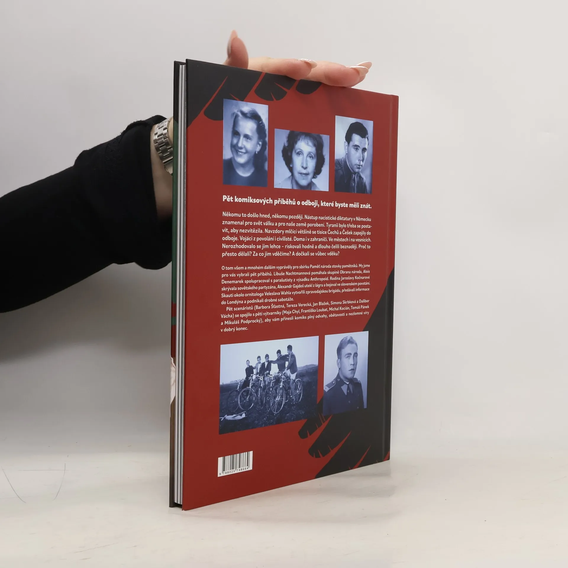 Pět komiksových příběhů o odboji, které byste měli znát. Někomu to došlo hned, někomu později. Nástup nacistické diktatury v Německu znamenal pro svět válku a pro naše země porobení. Tyranii bylo potřeba se postavit, aby nezvítězila. Navzdory mlčící většině se tisíce Čechů a Češek zapojily do odboje. Vojáci z povolání i civilisté. Doma i v zahraničí. Ve městech i na vesnicích. Nerozhodovalo se jim lehce – riskovali hodně a dlouho čelili beznaději. Proč to přesto dělali? Za co jim vděčíme? A dočkali se vůbec vděku? O tom všem a mnohém dalším vyprávěly pro sbírku Paměť národa stovky pamětníků. My jsme pro vás vybrali pět příběhů. Libuše Nachtmannová pomáhala skupině Obrana národa, Alois Denemarek spolupracoval s parašutisty z výsadku Anthropoid. Rodina Jaroslavy Kočnarové skrývala sovětského partyzána, Alexandr Gajdoš utekl z lágru a bojoval ve slovenském povstání. Skauti okolo ornitologa Veleslava Wahla vytvořili zpravodajskou brigádu, předávali informace do Londýna a podnikali drobné sabotáže. Pět scenáristů (Barbora Šťastná, Tereza Verecká, Jan Blažek, Mikuláš Kroupa a Dalibor Vácha) se spojilo s pěti výtvarníky (Františka Loubat, Maja Steinbauerová, Michal Kocián, Tomáš Pánek a Mikuláš Podprocký), aby vám přinesli komiks plný odvahy, obětavosti a nezlomné víry v dobrý konec.