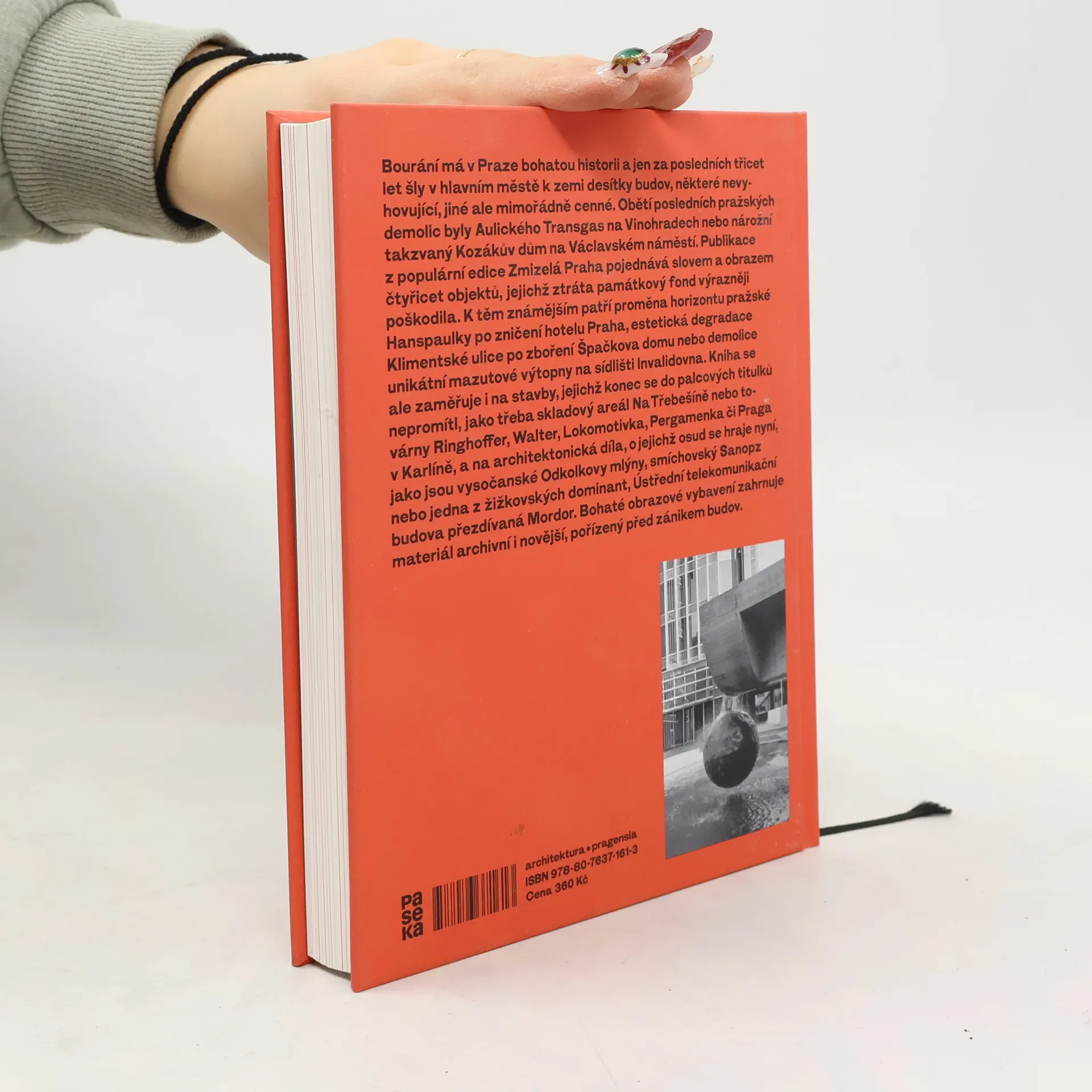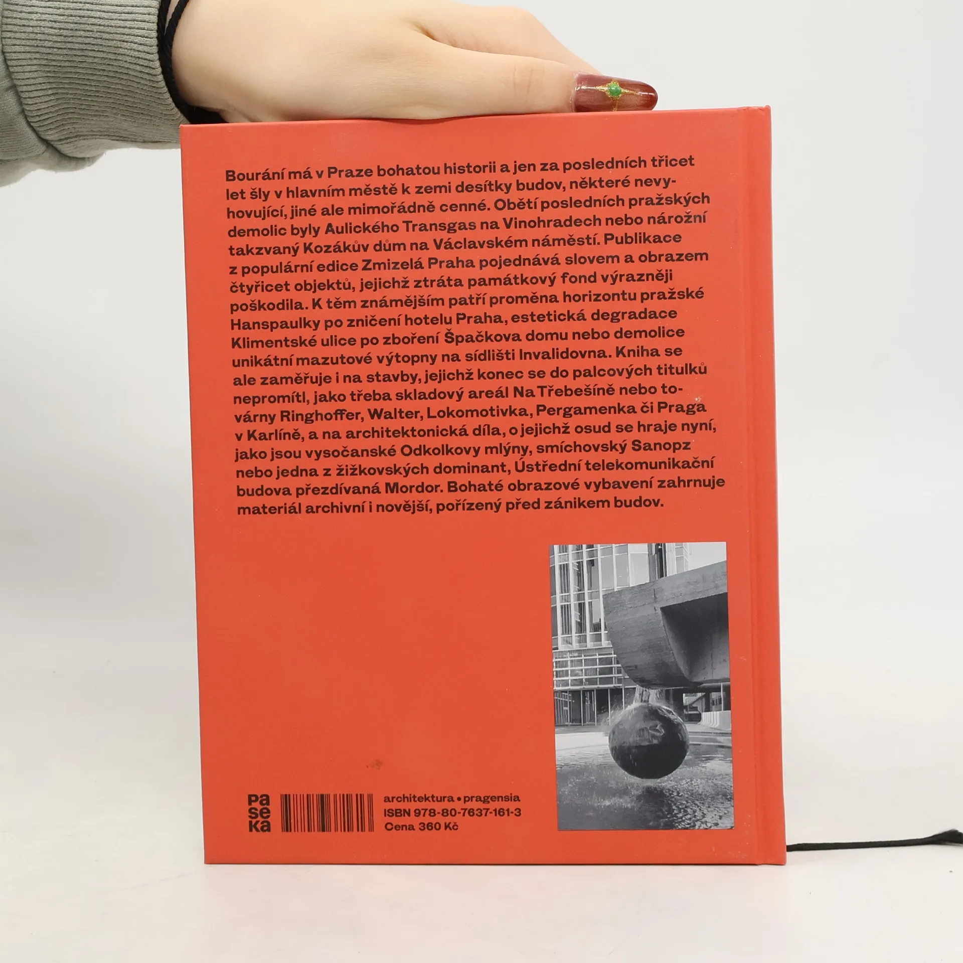 Bourání má v Praze bohatou historii a jen za posledních třicet let šly v hlavním městě k zemi desítky budov, některé nevyhovující, jiné ale mimořádně cenné. Obětí posledních pražských demolic byl Aulického Transgas na Vinohradech nebo nárožní, takzvaný Kozákův, dům na Václavském náměstí. Publikace pojednává slovem a obrazem čtyřicet objektů, jejichž ztráta památkový fond výrazněji poškodila. Z těch známějších k nim patří proměna horizontu pražské Hanspaulky po zničení hotelu Praha, estetická degradace Klimentské ulice po zboření Špačkova domu nebo demolice unikátní mazutové výtopny na sídlišti Invalidovna. Kniha se ale zaměřuje i na stavby, jejichž konec palcové titulky nezaznamenaly, jako například skladový areál Na Třebešíně, továrny Ringhoffer, Walter, Lokomotivka, Pergamenka či Praga v Karlíně. Bohaté obrazové vybavení knihy zahrnuje materiál archivní i novější, pořízený v době před zánikem budov.
