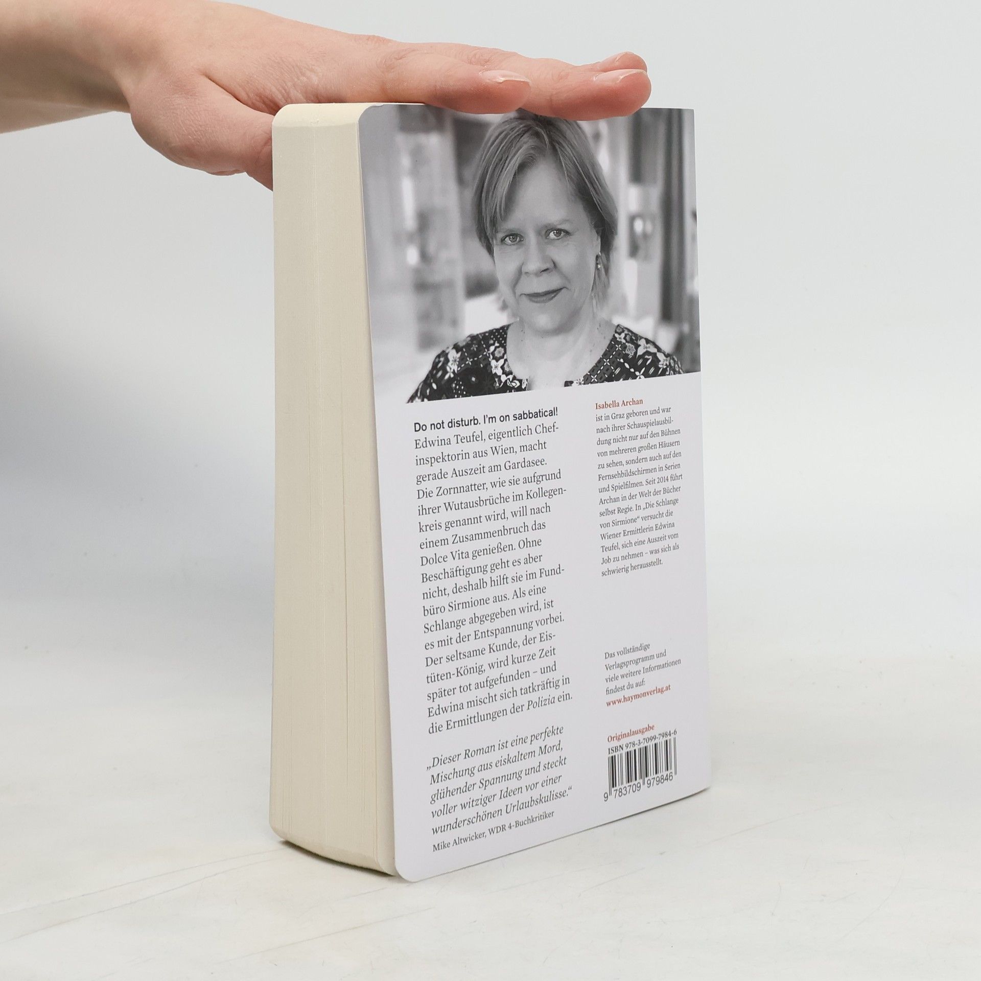 Der Gardasee: Lago della morte? Eine Wiener Ermittlerin mit Biss soll eine Auszeit nehmen – und landet bei der italienischen Polizia. Sind Zornnattern giftig? Nein, aber Respekt sollte man ihnen aufgrund ihres temperamentvollen Verhaltens trotzdem entgegenbringen. Edwina Teufel ist eigentlich Chefinspektorin in Wien und durch ihren Biss absolut erfolgreich in der Verbrechensaufklärung. Dieser steht ihr – ebenso wie ihr hitziges Temperament – allerdings häufig im Weg, denn was sie gar nicht leiden kann, sind Gedankenlosigkeit und Nachlässigkeit. Gerechtes und sauberes Arbeiten ist ihr Credo. Und bei Schlampereien, die im schlimmsten Fall den Opfern oder deren Angehörigen schaden, droht der eine oder andere Wutausbruch im Bundeskriminalamt, weshalb Edwina von den Kolleg*innen gern „Zornnatter“ genannt wird. Auf den Rat der Polizeitherapeutin hin nimmt sich Edwina schließlich ein Jahr Auszeit am Gardasee und möchte mit ihrem Toni das Dolce Vita genießen. Sabbatical mit Todesfolge Doch die eifrige Wiener Ermittlerin findet, dass es auch zu viel Far Niente gibt, und arbeitet ein paar Stunden in einem Fundbüro, um ihren Arbeitsdrang zu befriedigen. Als im Fundbüro eine Schlange abgegeben wird, ist das idyllische Leben in Bella Italia endgültig vorbei. Der Schlangenfinder wird am nächsten Morgen tot aufgefunden. Schnell spricht sich herum, dass es sich um den bekannten Eistüten-König von Sirmione handelt. Selbstverständlich heuert Edwina nun bei der Polizia an und mischt sich – ohne den Commissario Adriano Alceste immer in ihre Unternehmungen einzuweihen – tatkräftig in die Ermittlungen ein. La vita è bella – oder la vita è pericolosa? Isabella Archan nimmt uns mit an den Lago di Garda, aber sie geht nicht mit uns Pizzaessen und anschließend auf ein Glas Aperol Spritz mit Ausblick auf den See, während die Sonne romantisch in der Ferne untergeht. Nein, sie schleicht mit uns durch die Gassen von Sirmione und schickt uns zu einem Tortellinifestessen und einem Poesiewettbewerb, um eine*n Mörder*in zu finden. Schlagfertig, zielsicher und definitiv nicht auf den Mund gefallen: So mischt Edwina Teufel Sirmione auf!