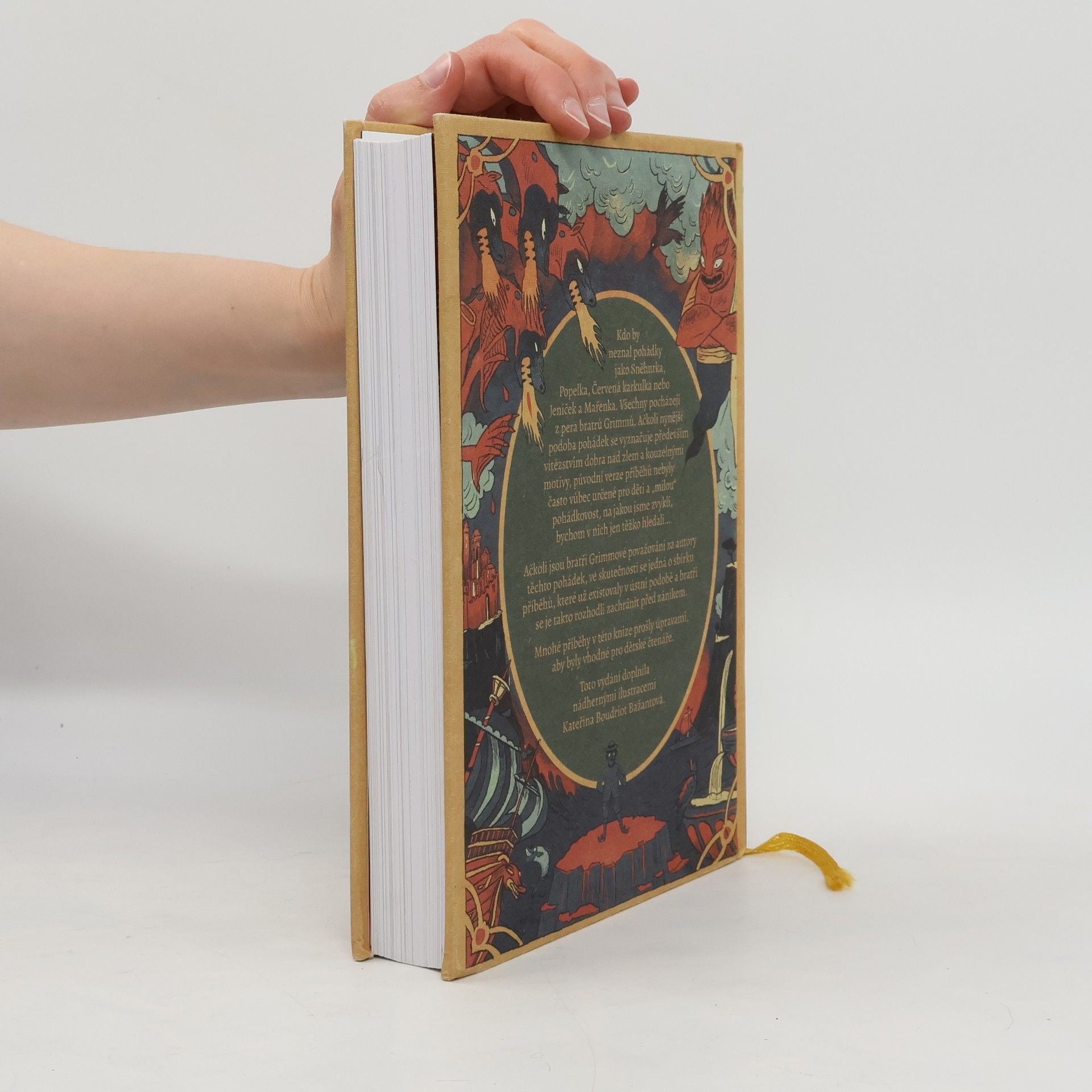 Pohádky bratří Grimmů jsou známé po celém světě, přičemž mezi nejznámější patří Sněhurka, Popelka, Červená karkulka a Jeníček s Mařenkou. Současná podoba těchto pohádek se zaměřuje na vítězství dobra nad zlem a kouzelné prvky, avšak původní verze nebyly určeny pro děti a obsahovaly temné motivy. První publikace zahrnovala 239 příběhů, které bratři Grimmové shromáždili z ústní tradice, aby je uchovali před zánikem. V prvním vydání bylo použito až 10 německých dialektů. Původní příběhy často obsahovaly násilí a sexuální témata, což vedlo k jejich opakovaným revizím pro dětské publikum. V češtině se pohádky poprvé objevily na přelomu 19. a 20. století jako Dětské pohádky: dle sbírky bratří Grimmů. V roce 1929 vyšel výběr O Palečkovi a jiné pohádky v překladu Pavly Wenigové, a od té doby bylo publikováno téměř 150 různých vydání. Toto nové vydání přináší nádherné ilustrace Kateřiny Bažantové Boudriot a stane se ozdobou každé knihovny.