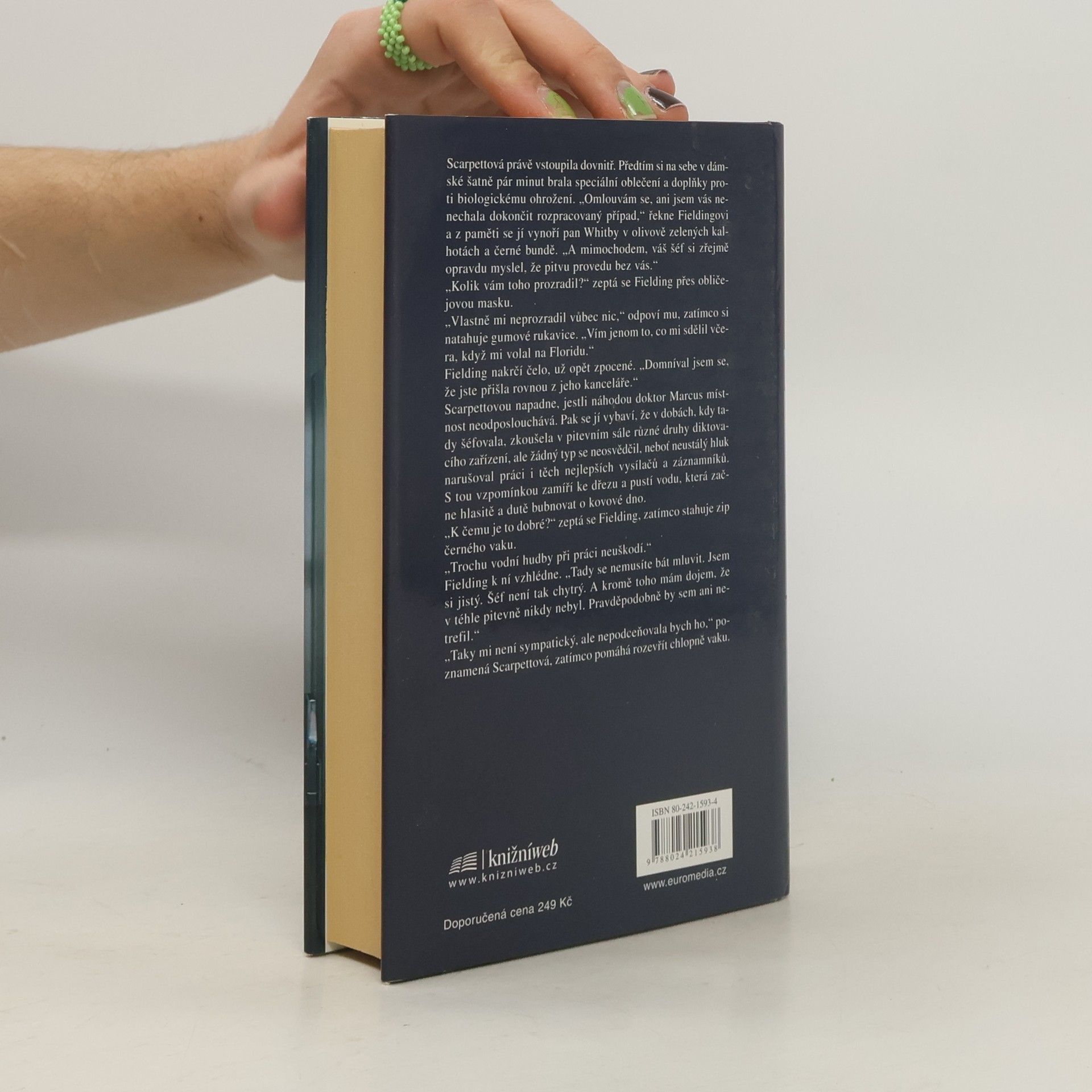 Kay je pozvána na bývalé pracoviště v Richmondu, aby konzultovala nevysvětlitelnou smrt čtrnáctileté školačky. Postupně se prokáže těsná souvislost s jiným případem a doktorka spolu s policií je na stopě psychopatickému vrahovi, který je s ní a s její neteří Lucy v překvapivém spojení. Kromě obvyklé morbidnosti se autorka tentokrát soustředila na psychologický portrét duševně narušeného jedince.