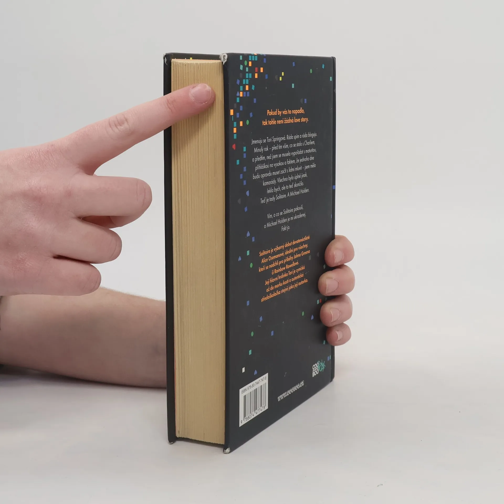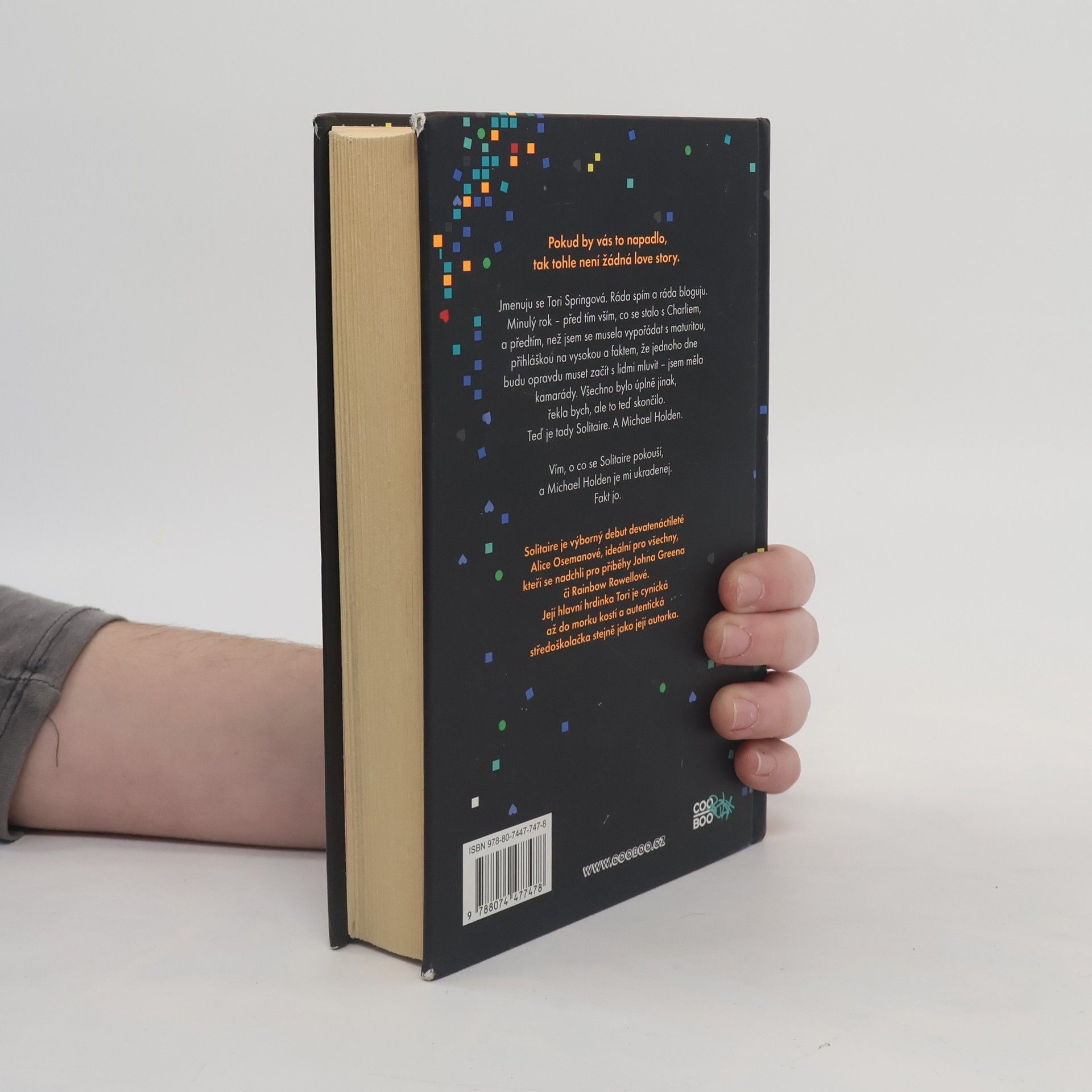 Pokud by vás to napadlo, tak tohle není žádná love story. Jmenuju se Tori Springová. Ráda spím a ráda bloguju. Minulý rok – před tím vším, co se stalo s Charliem a předtím, než jsem se musela vypořádat s maturitou a přihláškou na vysokou a faktem, že jednoho dne opravdu budu muset začít s lidmi mluvit – jsem měla kamarády. Všechno bylo úplně jinak, řekla bych, ale to teď skončilo. Teď je tady Solitaire. A Michael Holden. Vím, o co se Solitaire pokouší a Michael Holden je mi ukradenej. Fakt jo. Solitaire je výborný debut devatenáctileté Alice Osemanové, ideální pro všechny, kteří se nadchli pro příběhy Johna Greena či Rainbow Rowellové. Její hlavní hrdinka Tori je cynická až do morku kostí a autentická středoškolačka stejně jako její autorka.