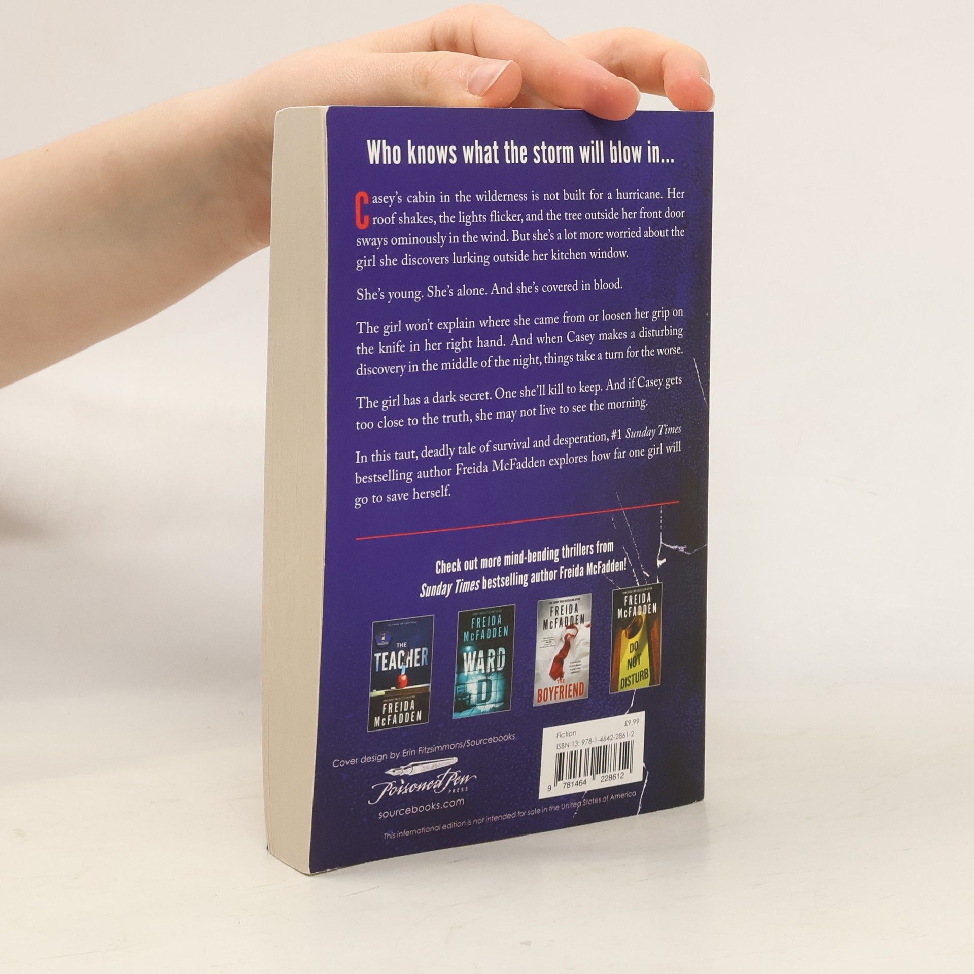 There's someone at your front door - should you let them in? Find out in a riveting new thriller from global sensation and #1 Sunday Times bestselling author of The Housemaid, Freida McFadden! Who knows what the storm will blow in... Casey's cabin in the wilderness is not built for a hurricane. Her roof shakes, the lights flicker, and the tree outside her front door sways ominously in the wind. But she's a lot more worried about the girl she discovers lurking outside her kitchen window. She's young. She's alone. And she's covered in blood. The girl won't explain where she came from, or loosen her grip on the knife in her right hand. And when Casey makes a disturbing discovery in the middle of the night, things take a turn for the worse. The girl has a dark secret. One she'll kill to keep. And if Casey gets too close to the truth, she may not live to see the morning. In this taut, deadly tale of survival and desperation, #1 Sunday Times bestselling author Freida McFadden explores how far one girl will go to save herself.