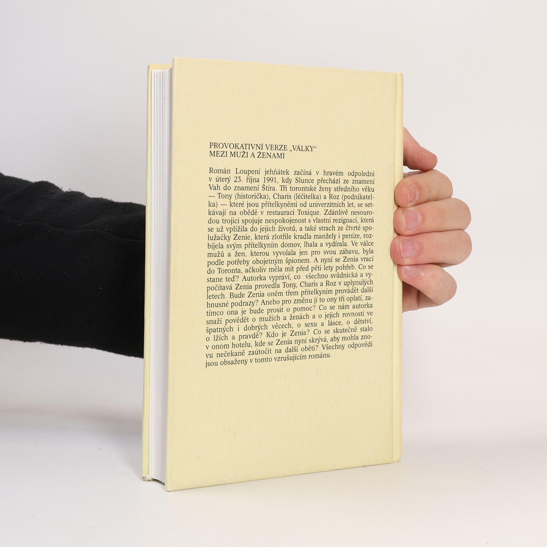 Román o třech torontských ženách, jimž jejich svůdnická a vypočítavá přítelkyně zasáhne tragicky do života. Tři spolužačky z univerzity svede dohromady společný úděl, když jim jejich společná přítelkyně postupně odloudí manžely. Ta si s drzou bezprostředností pohrává s city a osudy svých přátel, dělá jí potěšení manipulovat s jejich životy a zdá se, že proti jejímu sprostému vyděračství a patologickému intrikánství jsou slušní lidé bezmocní. Autorka v psychologicko-dramatickém příběhu udržuje napětí do poslední stránky a v úměrné míře odvádí i povinnou daň módní mystice a psychologii.
