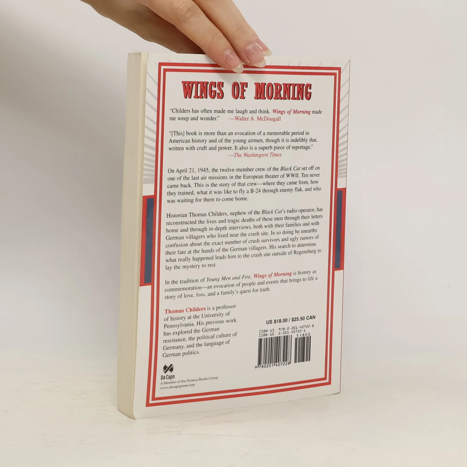 On April 21, 1945, the twelve-member crew of the Black Cat set off on one of the last air missions in the European theater of World War II. Ten never came back. This is the story of that crew—where they came from, how they trained, what it was like to fly a B-24 through enemy flak, and who was waiting for them to come home.Historian Thomas Childers, nephew of the Black Cat 's radio operator, has reconstructed the lives and tragic deaths of these men through their letters home and through in-depth interviews, both with their families and with German villagers who lived near the crash site. In so doing he unearths confusion about the exact number of crash survivors and ugly rumors of their fate at the hands of the German villagers. His search to determine what really happened leads him to the crash site outside of Regensburg to lay the mystery to rest.In the tradition of Young Men and Fire, Wings of Morning is history as commemoration-an evocation of people and events that brings to life a story of love, loss, and a family's quest for truth.