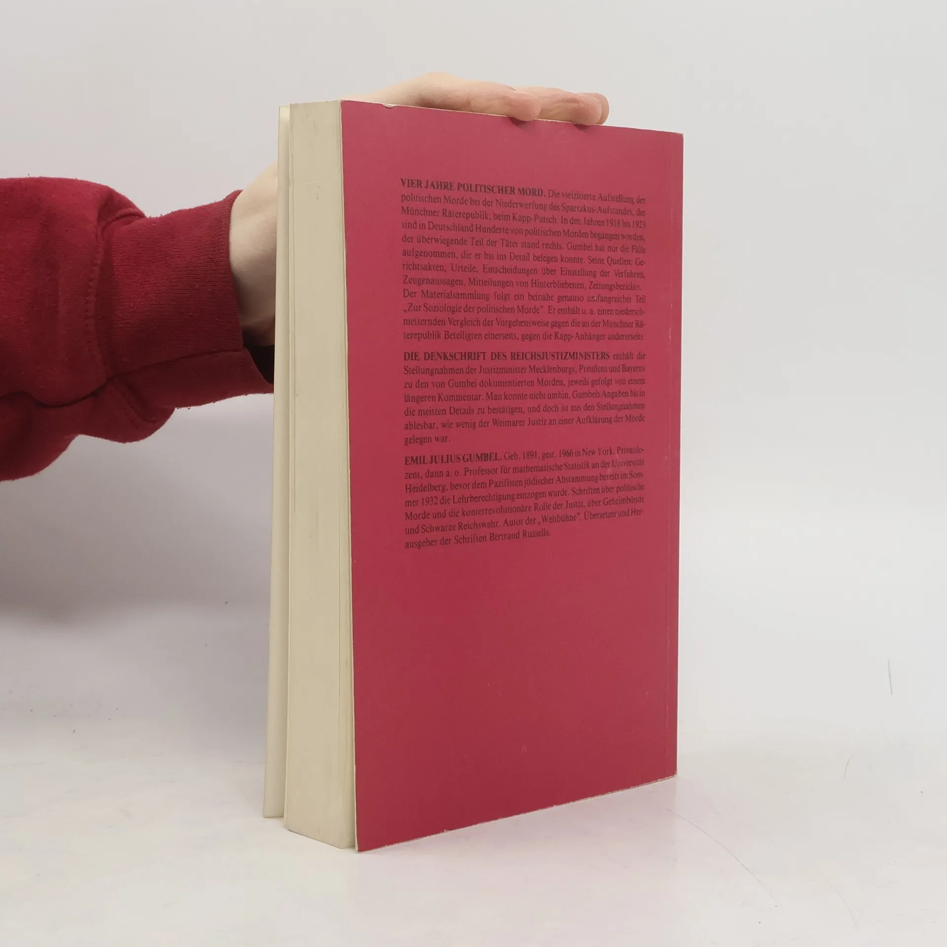 Vier Jahre politischer Mord und Denkschrift des Reichsjustizministers zu "Vier Jahre politischer Mord", Emil Julius Gumbel