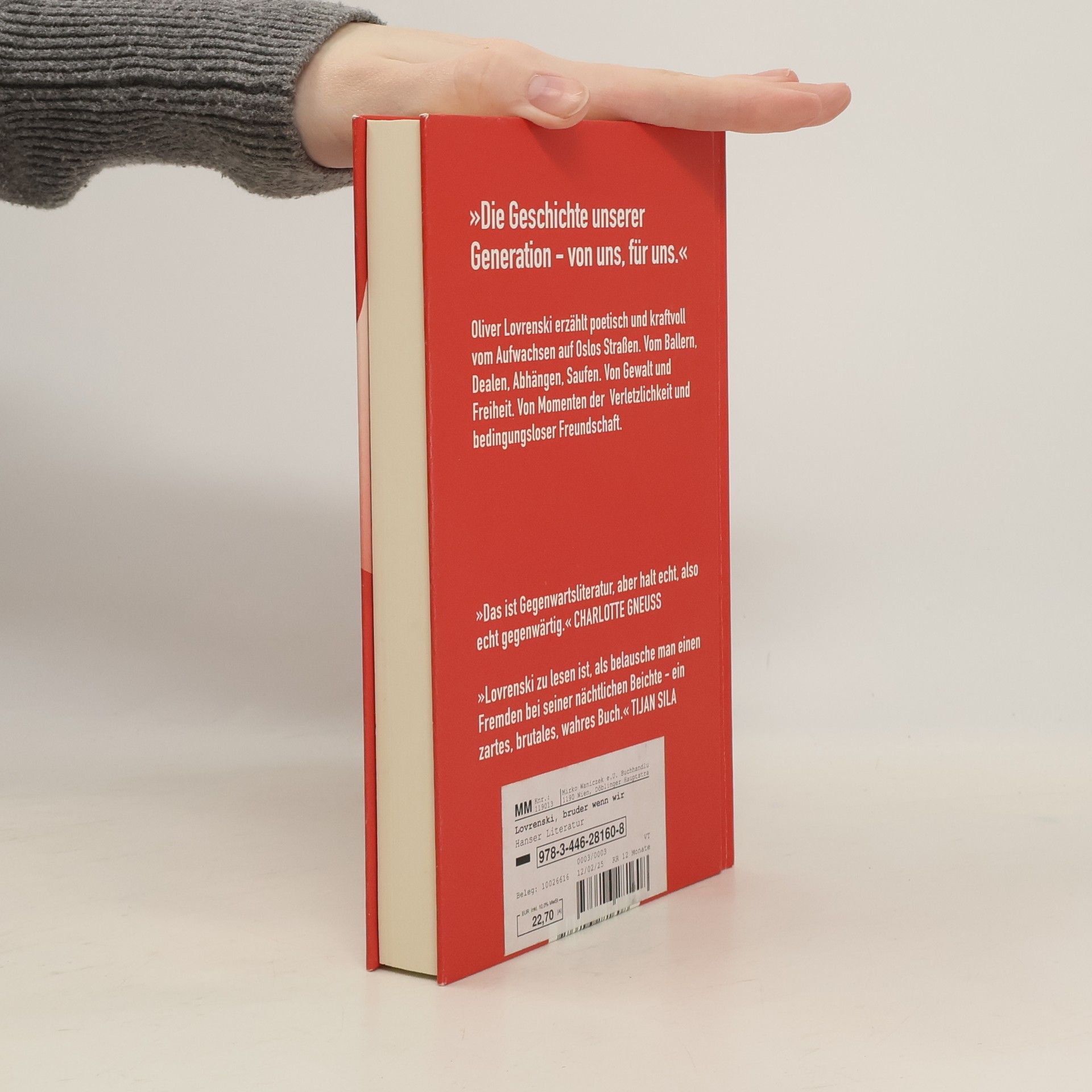 »Lovrenski zu lesen ist, als belausche man einen Fremden bei seiner nächtlichen Beichte – ein zartes, brutales, wahres Buch.« Tijan Sila Sie sind jung, voller Ängste, Pillen und Hoffnung. Ihre Eltern leben in der Peripherie, Polizei und Jugendamt sitzen ihnen im Nacken, die Schule ist ein Angebot, das sie dankend ausschlagen. Ivor, Marco, Jonas und Arjan sind rastlos, zwischen den schicken Bars und hyggeligen Cafés Oslos gibt es keinen Platz für sie. Also treiben sie sich auf den Straßen, in improvisierten Gyms und einem maroden Einkaufszentrum herum und geraten Tag für Tag, line für line tiefer in eine Welt des Rauschs, der Gewalt und Kriminalität. Die Liebe zueinander macht sie unbesiegbar – bis einer von ihnen zu weit geht und ihre unheile Welt vollends zerbricht. Oliver Lovrenski, der zwanzigjährige Sensationsautor aus Norwegen, zieht uns hinein in eine atemlose, brutale Jugend und offenbart Zärtlichkeit, wo niemand sie erwartet.