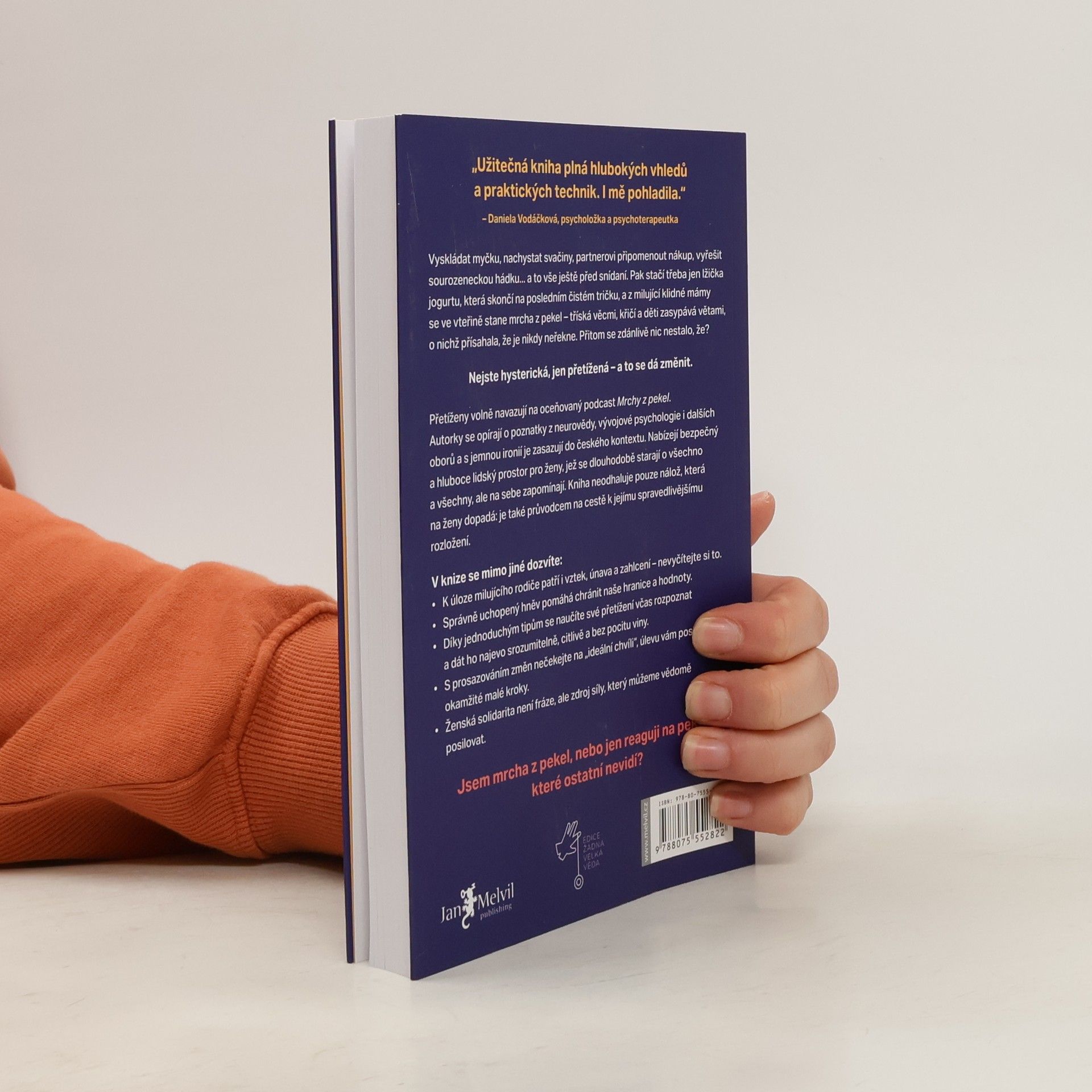 Jsem mrcha z pekel, nebo jen reaguji na peklo, které ostatní nevidí?Vyskládat myčku, nachystat svačiny, partnerovi připomenout nákup, vyřešit sourozeneckou hádku... a to vše ještě před snídaní. Pak stačí třeba jen lžička jogurtu, která skončí na posledním čistém tričku, a z milující klidné mámy se ve vteřině stane mrcha z pekel – tříská věcmi, křičí a děti zasypává větami, o nichž přísahala, že je nikdy neřekne. Přitom se zdánlivě nic nestalo, že?Nejste hysterická, jen přetížená – a to se dá změnit.Přetíženy volně navazují na oceňovaný podcast Mrchy z pekel. Autorky se opírají o poznatky z neurovědy, vývojové psychologie i dalších oborů a s jemnou ironií je zasazují do českého kontextu. Nabízejí bezpečný a hluboce lidský prostor pro ženy, jež se dlouhodobě starají o všechno a všechny, ale na sebe zapomínají. Kniha neodhaluje pouze nálož, která na ženy dopadá: je také průvodcem na cestě k jejímu spravedlivějšímu rozložení.V knize se mimo jiné dozvíte:■ K úloze milujícího rodiče patří i vztek, únava a zahlcení – nevyčítejte si to.■ Správně uchopený hněv pomáhá chránit naše hranice a hodnoty.■ Díky jednoduchým tipům se naučíte své přetížení včas rozpoznat a dát ho najevo srozumitelně, citlivě a bez pocitu viny.■ S prosazováním změn nečekejte na „ideální chvíli“, úlevu vám poskytnou okamžité malé kroky.■ Ženská solidarita není fráze, ale zdroj síly, který můžeme vědomě posilovat.