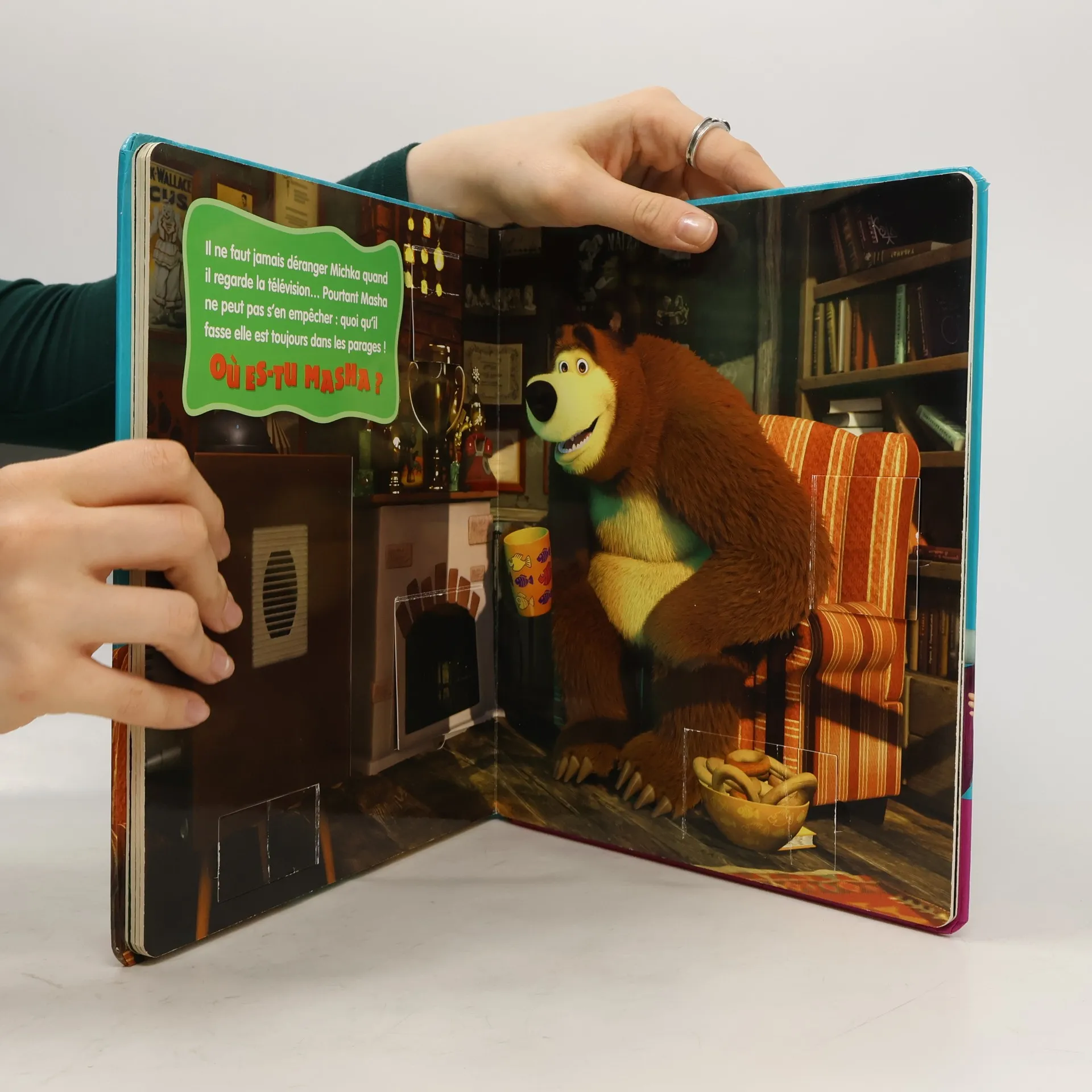 Un très joli livre animé pour avec de nombreux volets à soulever pour aider Michka à retrouver Masha.