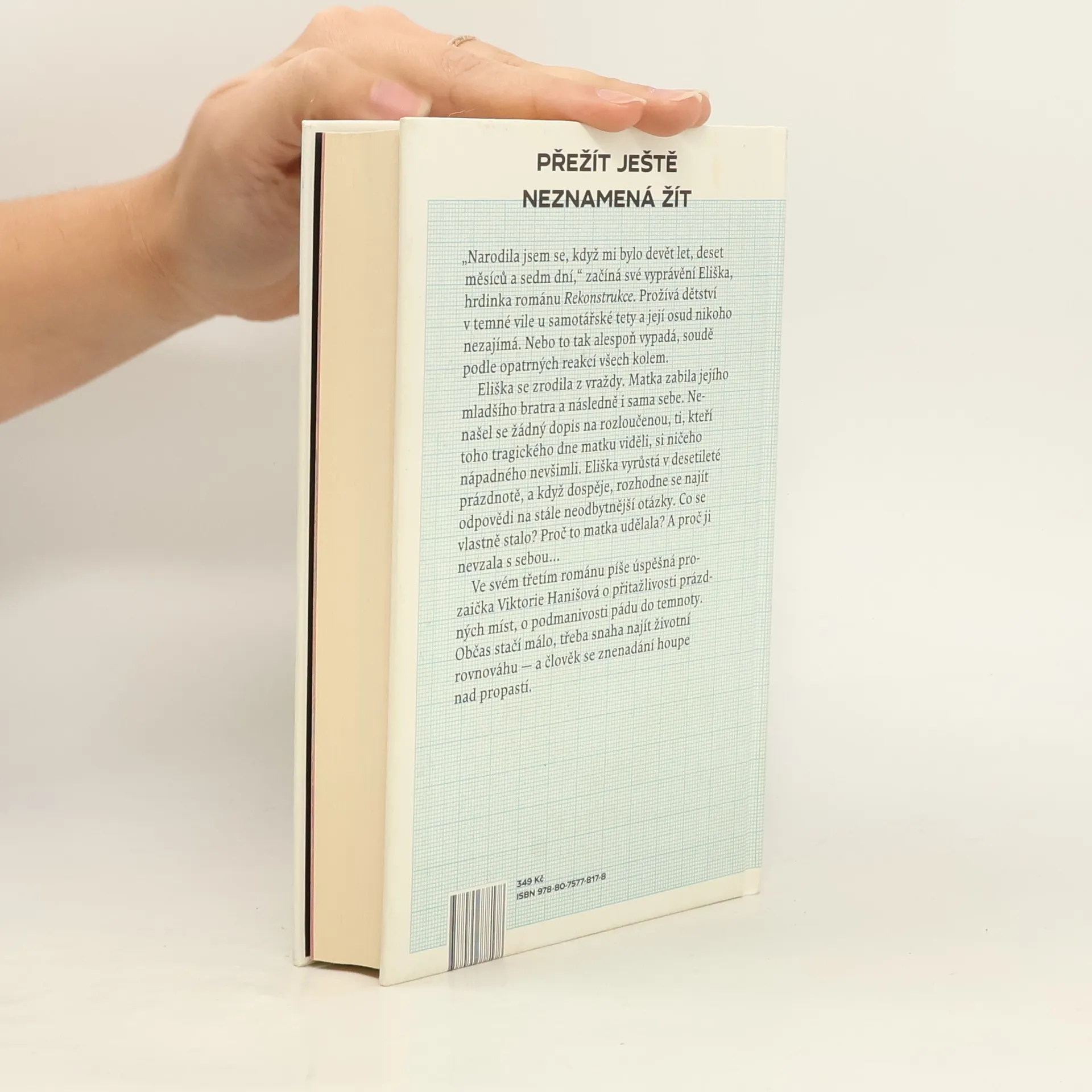 Přežít ještě neznamená žít „Narodila jsem se, když mi bylo devět let, deset měsíců a sedm dní,“ začíná své vyprávění Eliška, hrdinka románu Rekonstrukce. Eliška nyní přebývá v tichém domě své zapšklé tety a její život nikoho nezajímá. Nebo to tak alespoň vypadá, soudě podle opatrných reakcí všech okolo. Eliška se zrodila z vraždy. Matka zabila jejího mladšího bratra a následně i sama sebe. Do té doby přitom vedli průměrný život, v němž nic nenasvědčovalo nadcházející tragické události. Nenašel se ani žádný dopis na rozloučenou, svědkové posledního dne zamlklé matky s dítětem si pořádně ničeho nevšimli. Eliška proto vyrůstá s desetiletou prázdnotou místo dětství, kterou se v dospělosti rozhodne objasnit. Proč to matka udělala? A proč ji nevzala s sebou… V pořadí třetí román úspěšné prozaičky Viktorie Hanišové je o přitažlivosti prázdných míst, o podmanivosti pádu do temnoty. Občas stačí málo, třeba snaha najít životní rovnováhu — a člověk se znenadání kýve nad propastí.