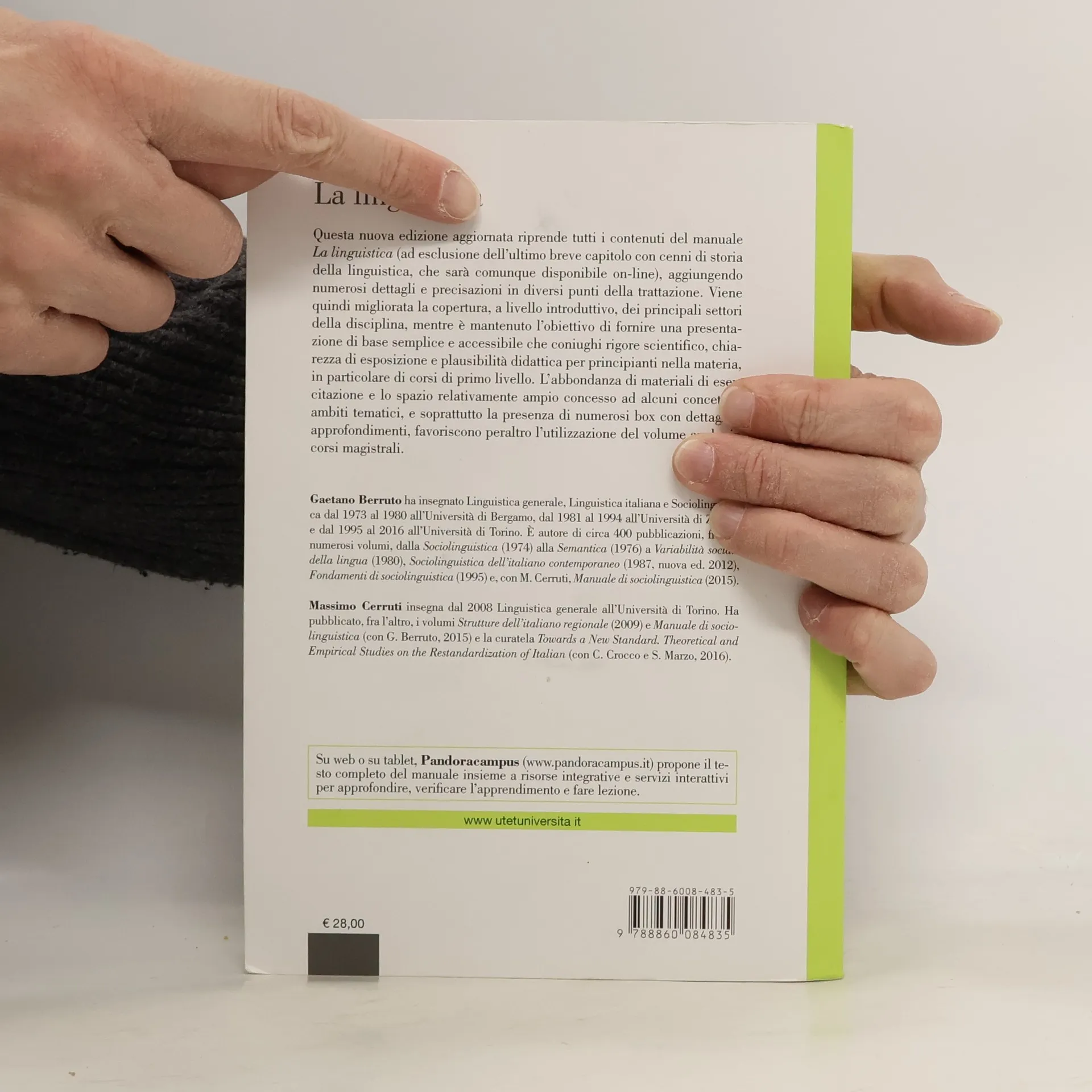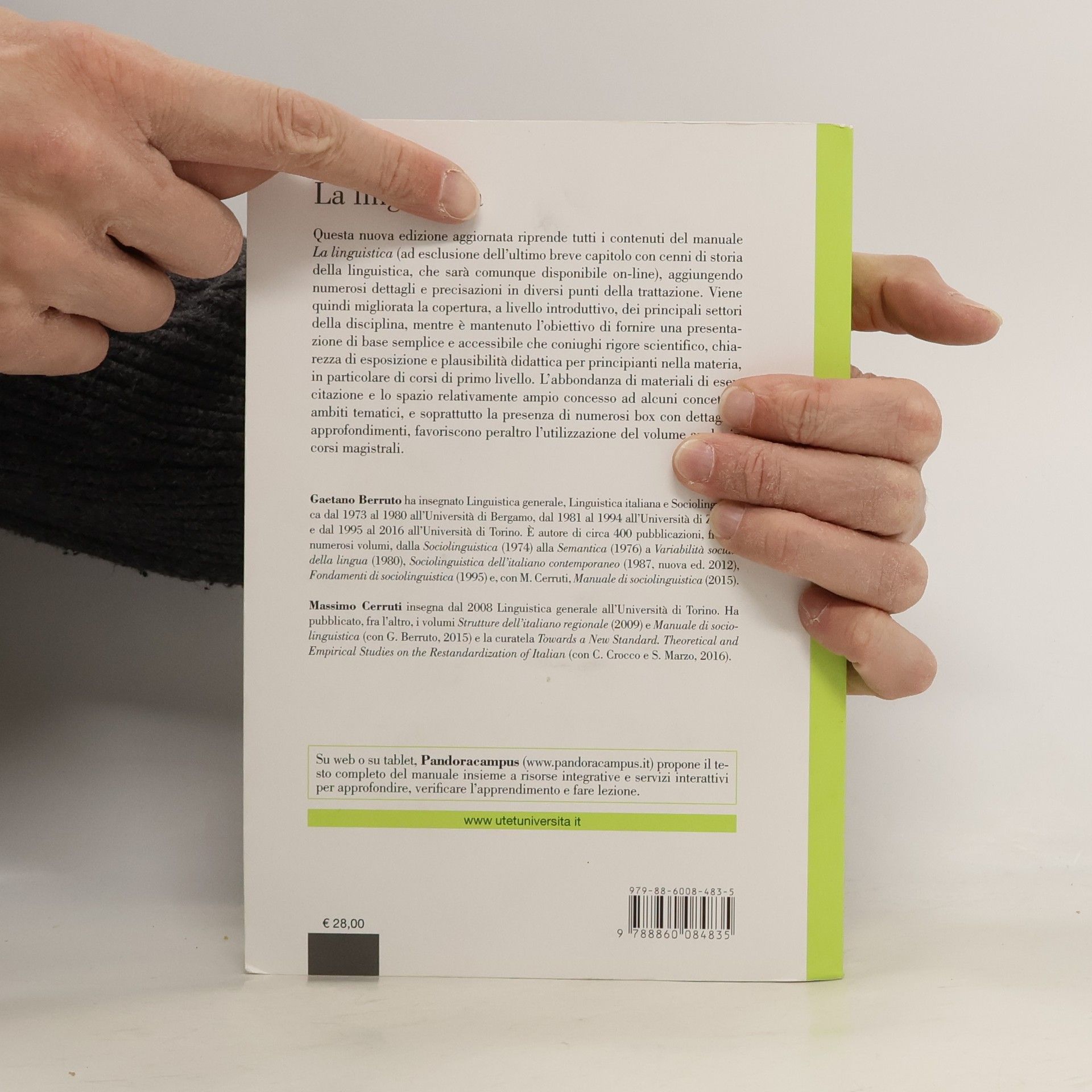 Questa nuova edizione aggiornata riprende tutti i contenuti del manuale La linguistica (ad esclusione dell’ultimo breve capitolo con cenni di storia della linguistica, che sarà comunque disponibile on-line), aggiungendo numerosi dettagli e precisazioni in diversi punti della trattazione. Viene quindi migliorata la copertura, a livello introduttivo, dei principali settori della disciplina, mentre è mantenuto l’obiettivo di fornire una presentazione di base semplice e accessibile che coniughi rigore scientifico, chiarezza di esposizione e plausibilità didattica per principianti nella materia, in particolare di corsi di primo livello. L’abbondanza di materiali di esercitazione e lo spazio relativamente ampio concesso ad alcuni concetti e ambiti tematici, e soprattutto la presenza di numerosi box con dettagli e approfondimenti, favoriscono peraltro l’utilizzazione del volume anche in corsi magistrali.