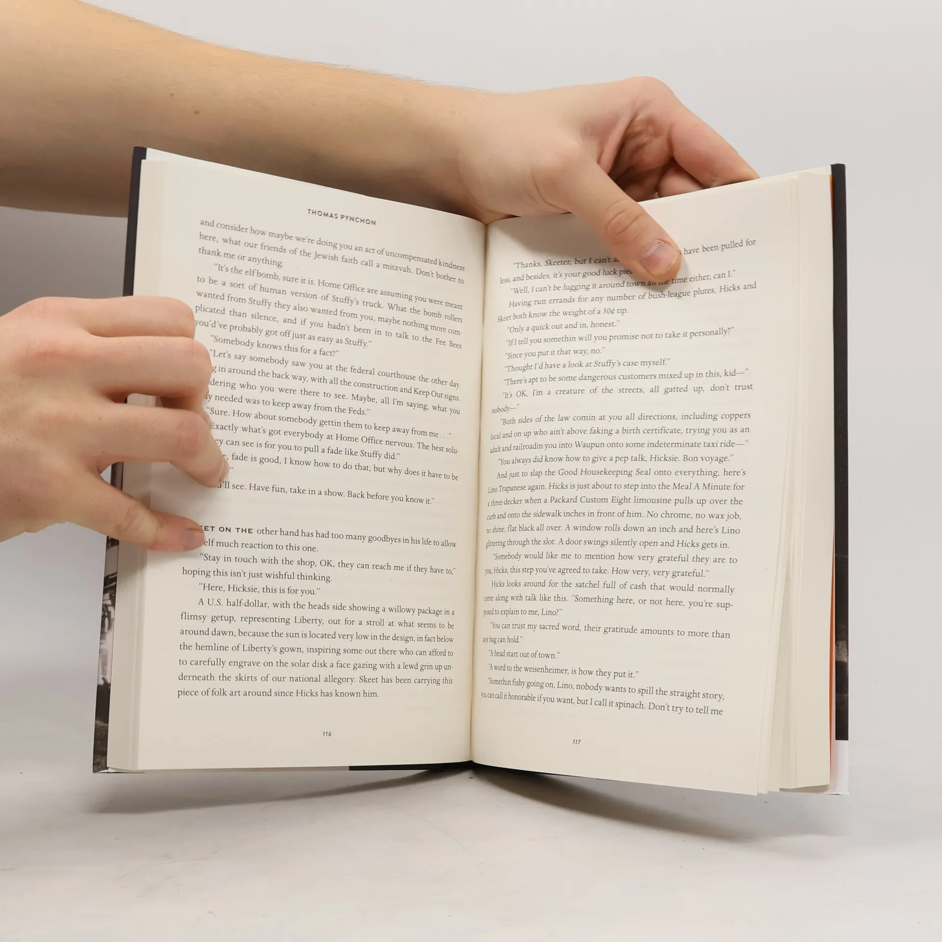 The new novel from Thomas Pynchon Milwaukee 1932, the Great Depression going full blast, repeal of Prohibition just around the corner, Al Capone in the federal pen, the private investigation business shifting from labour-management relations to the more domestic kind. Hicks McTaggart, a onetime strikebreaker turned private eye, thinks he's found job security until he gets sent out on what should be a routine case, locating and bringing back the heiress of a Wisconsin cheese fortune who's taken a mind to go wandering. Before he knows it, he's been shanghaied onto a transoceanic liner, ending up eventually in Hungary where there's no shoreline, a language from some other planet, and enough pastry to see any cop well into retirement - and of course no sign of the runaway heiress he's supposed to be chasing. By the time Hicks catches up with her he will find himself also entangled with Nazis, Soviet agents, British counterspies, swing musicians, practitioners of the paranormal, outlaw motorcyclists, and the troubles that come with each of them, none of which Hicks is qualified, forget about being paid, to deal with. Surrounded by history he has no grasp on and can't see his way around in or out of, the only bright side for Hicks is it's the dawn of the Big Band Era and as it happens he's a pretty good dancer. Whether this will be enough to allow him somehow to Lindy-hop his way back again to Milwaukee and the normal world, which may no longer exist, is another question.