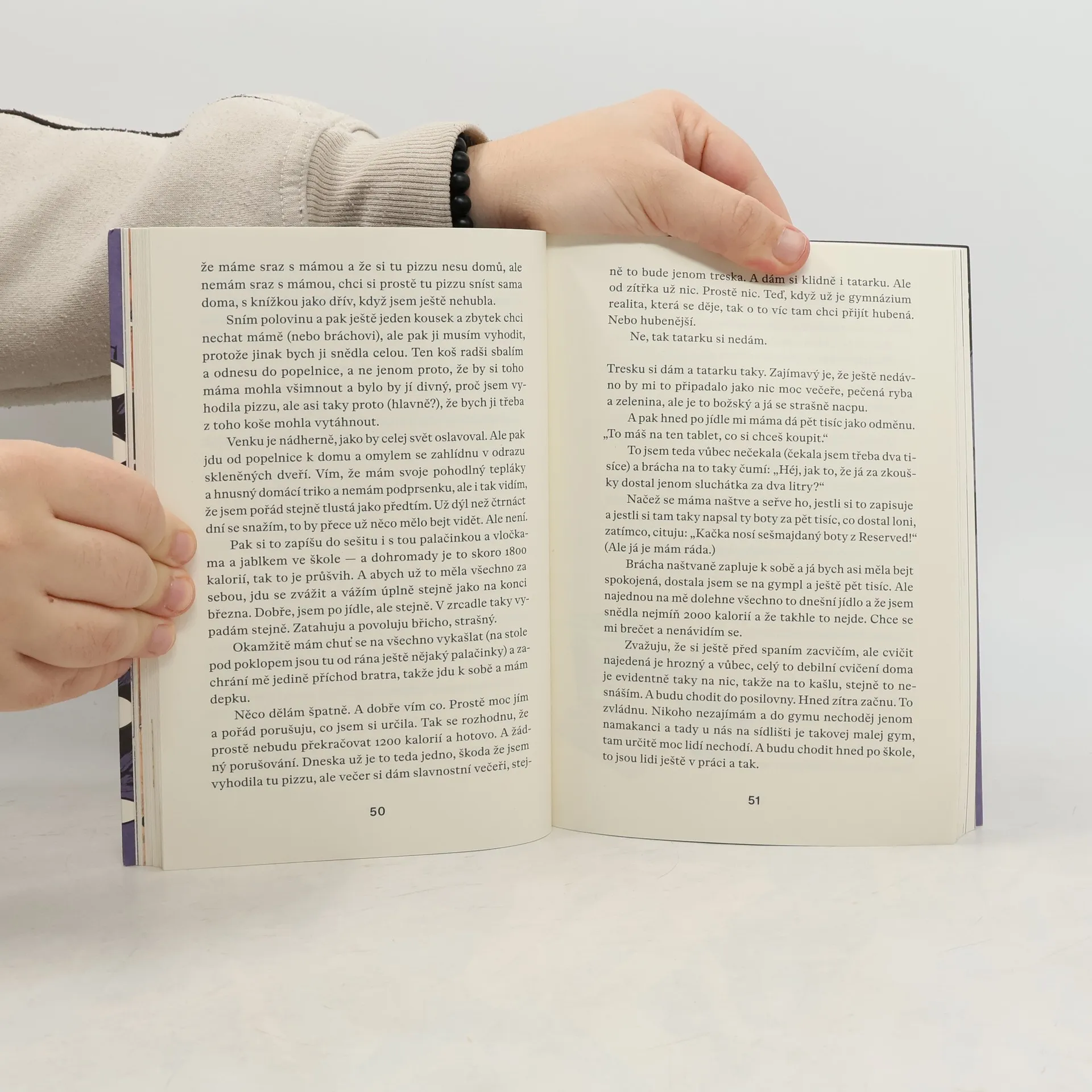 Skoro patnáctiletá Katka tráví většinu času sama a nejradši si čte. A taky ráda jí. Spolužáci ji mají za podivínku. Katka ale ví, že na gymplu bude všechno jinak, a hned po přijímačkách si dá předsevzetí: zhubnout. Zpočátku jde jen o snahu upravit životní styl, postupně se ale ukáže, že cesta k vysněnému „novému já“ není tak jednoduchá, jak si představovala. Touha po změně se Katce začne vymykat z rukou. Na gymplu se opravdu všechno změní — jen trochu jinak, než čekala. Autentický příběh o dospívání, hledání vlastní identity a cestě k sebepřijetí. Jednu z hlavních rolí v něm sice hraje anorexie, ale tím nejpodstatnějším jsou — jak už je u Petry Soukupové zvykem — mezilidské vztahy.