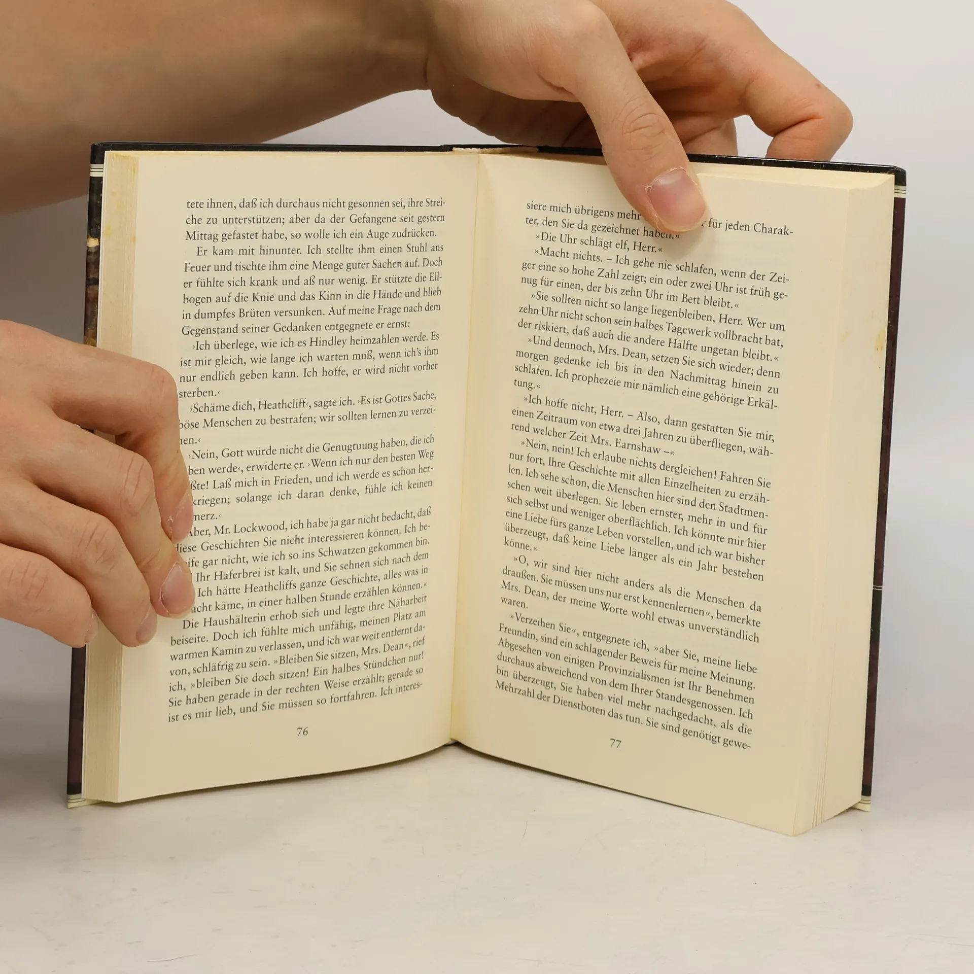 »›Wuthering Heights‹, Sturmhöhe, heißt Mister Heathcliffs Besitztum. ›Wuthering‹ ist ein trefflich mundartlicher Ausdruck, um den Aufruhr der Lüfte zu beschreiben, dem dieser Ort bei stürmischem Wetter ausgesetzt ist.« Dort, in einer einsamen Moorgegend, spielt sich in einem Kreis von fünf Personen der weltberühmte Familienroman ab, der in kunstvoller Überschneidung und Verhüllung durch drei Generationen führt.