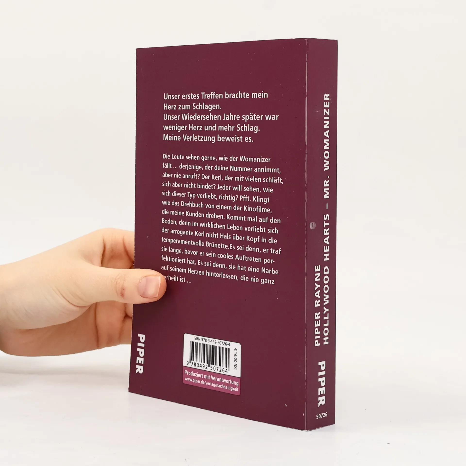 Unser erstes Treffen brachte mein Herz zum Schlagen. Unser Wiedersehen Jahre später war weniger Herz und mehr Schlag. Meine Verletzung beweist es. Die Leute sehen gerne, wie der Womanizer fällt … derjenige, der deine Nummer annimmt, aber nie anruft? Der Kerl, der mit vielen schläft, sich aber nicht bindet? Jeder will sehen, wie sich dieser Typ verliebt, richtig? Pfft. Klingt wie das Drehbuch von einem der Kinofilme, die meine Kunden drehen. Kommt mal auf den Boden, denn im wirklichen Leben verliebt sich der arrogante Kerl nicht Hals über Kopf in die temperamentvolle Brünette. Es sei denn, er traf sie lange, bevor er sein cooles Auftreten perfektioniert hat. Es sei denn, sie hat eine Narbe auf seinem Herzen hinterlassen, die nie ganz verheilt ist … Alle Bände der Hollywood Hearts-Reihe von Piper Rayne: Band 0/Novella: It Started in L.A. Band 1: Hollywood Hearts – Mr. Nanny Band 2: Hollywood Hearts – Mr. Dreamer Band 3: Hollywood Hearts – Mr. Womanizer